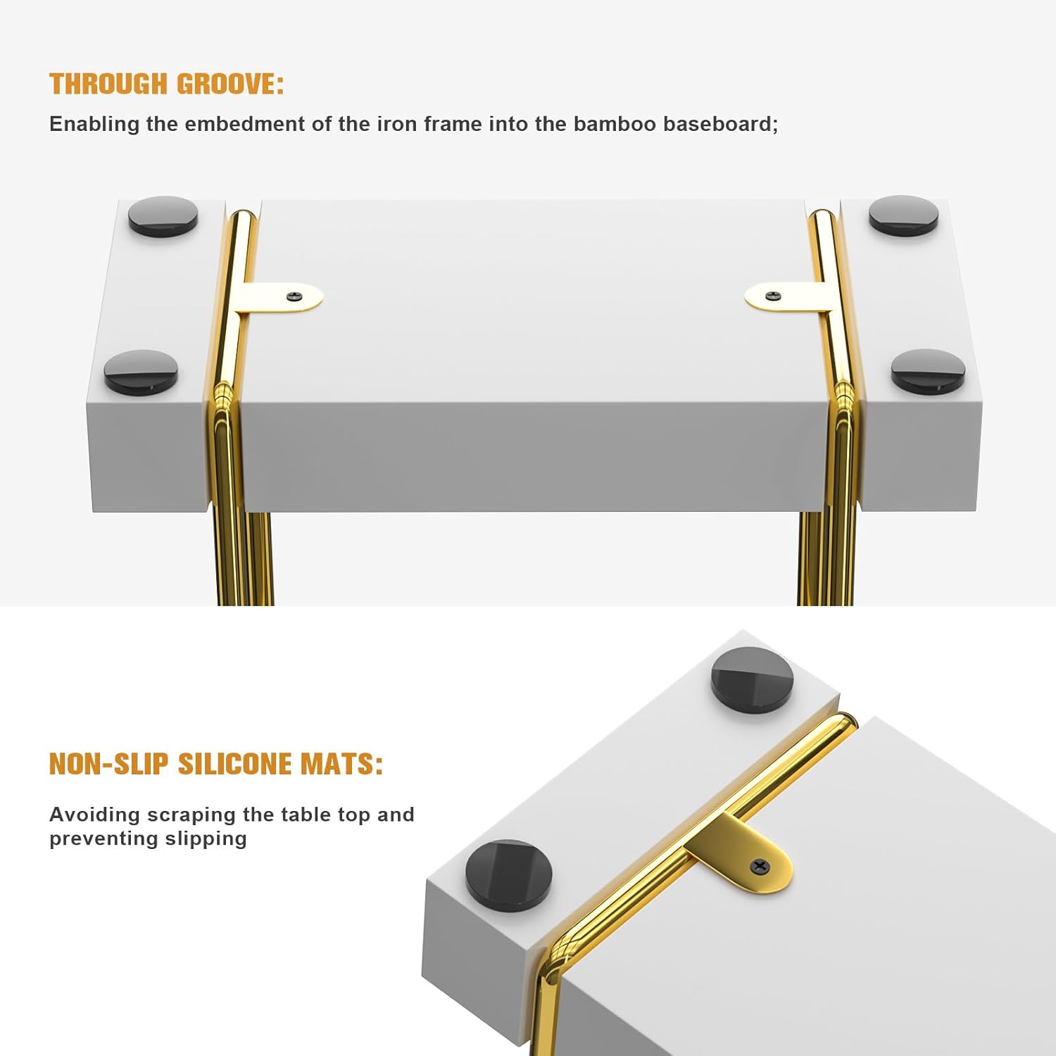 Napkin Holder for Table, Bamboo Iron Standing Napkin Dispenser for Dining Table Farmhouse Cocktail Picnic Rustic Wood Holders All Kitchen Dining Room Decor Gold & White
