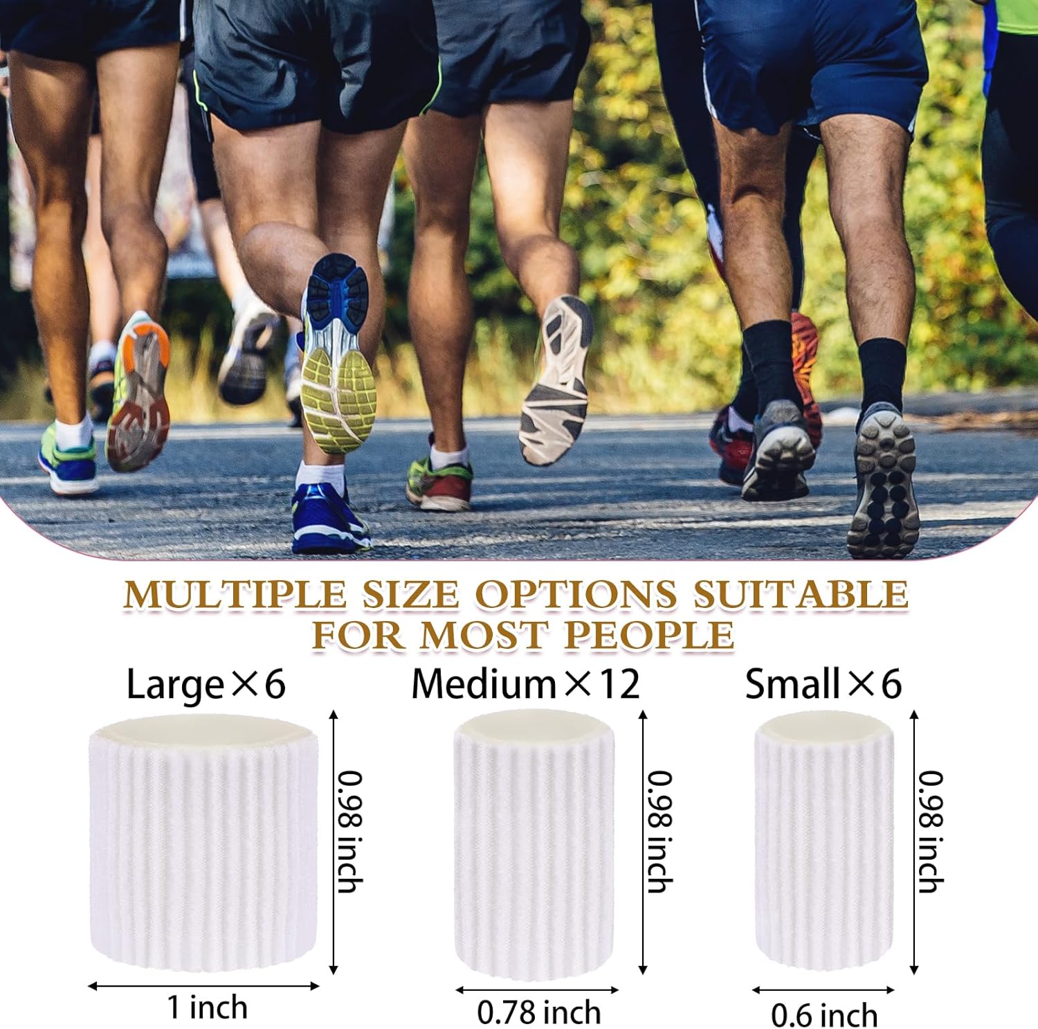 - Quantity: 24 pieces toe cushion in 3 sizes, 6 pieces large (1 inch diameter), 12 pieces medium (0.78 inch diameter), 6 pieces small (0.6 inch diameter), fits for most people