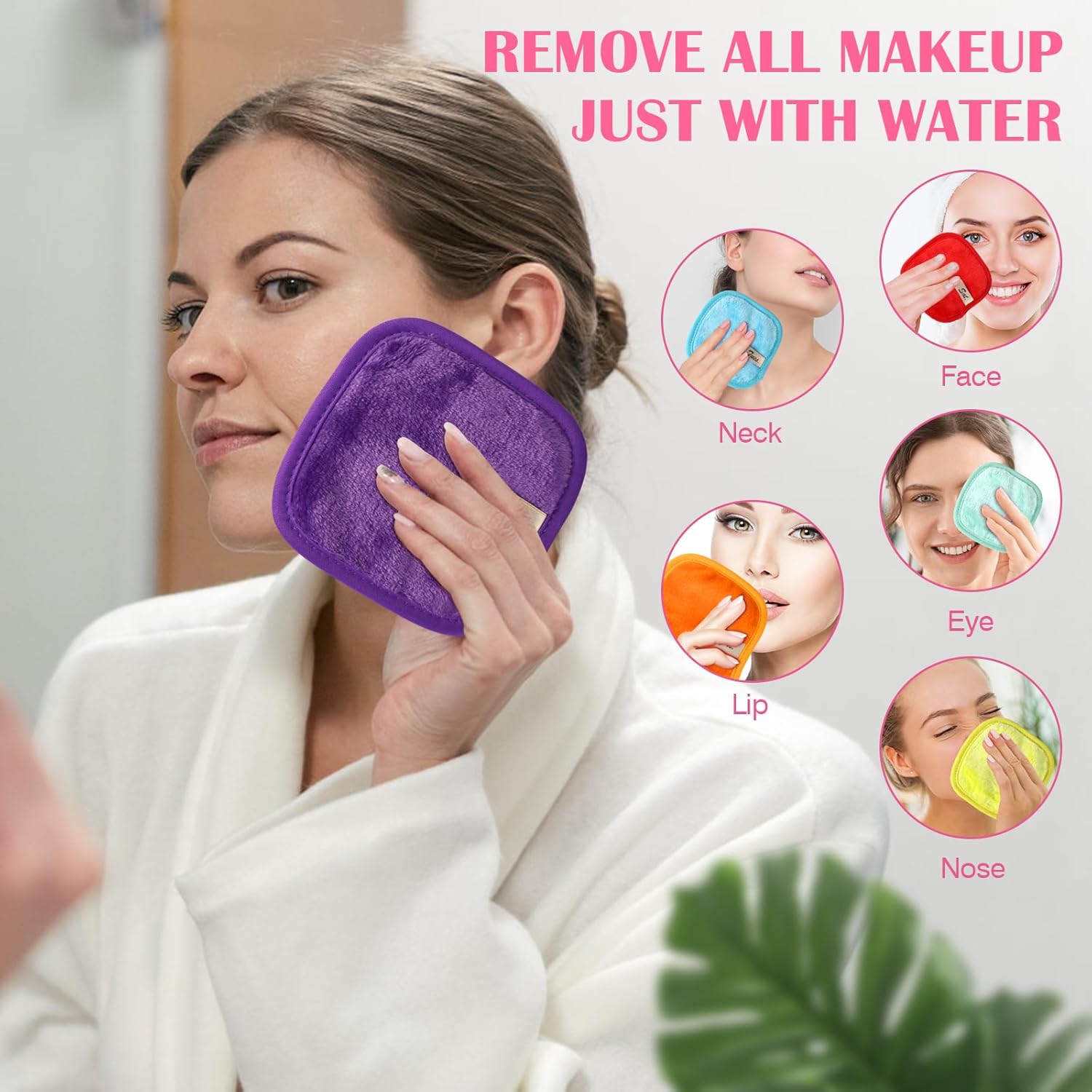 - LONG-LASTING AND TRAVEL-FRIENDLY: Each makeup removal cloth equips with a long-lasting ribbon for hanging, and also stitched with high-quality sewing edge, not easy to deform. Measuring 5 x 5 inches, portable, easy to store and travel-friendly