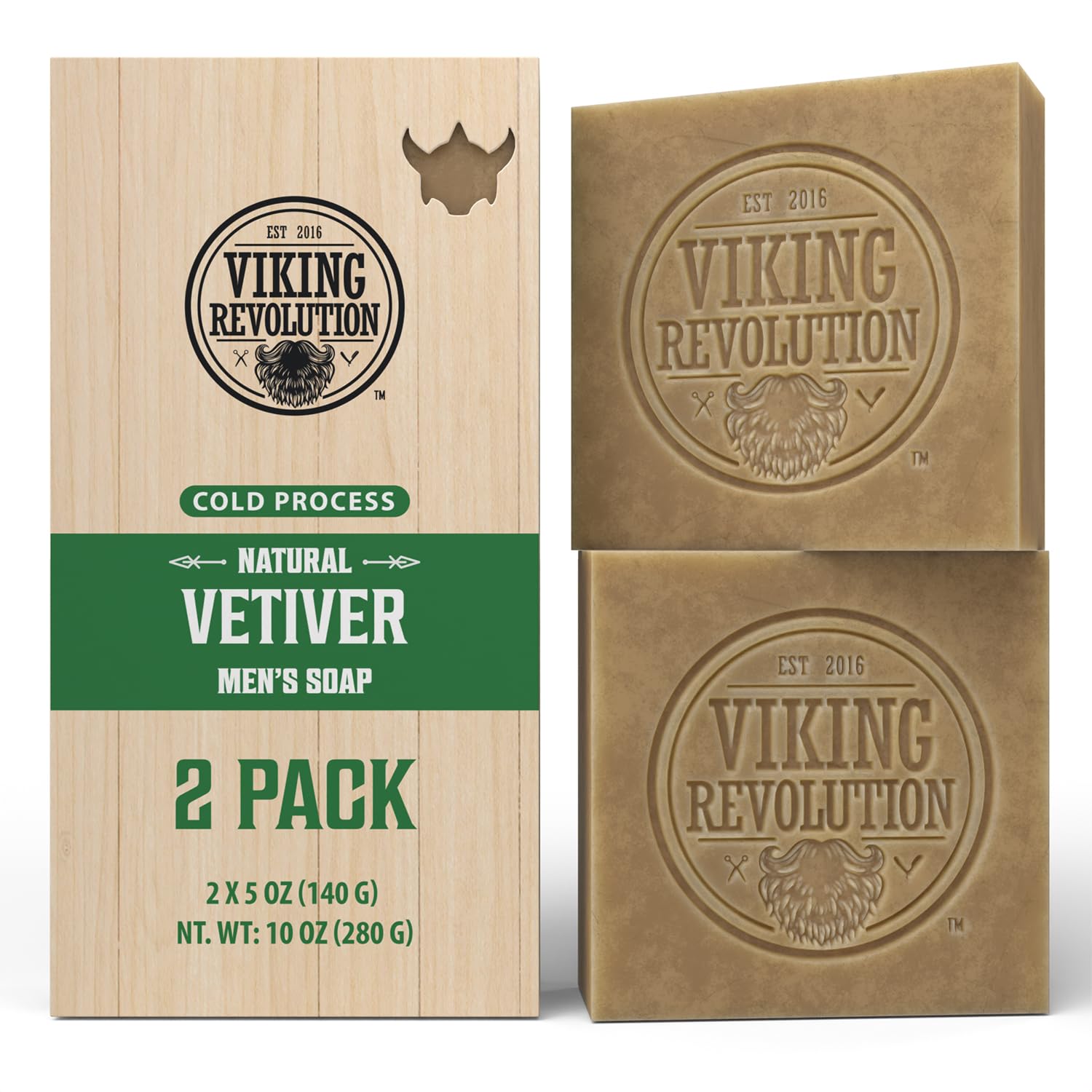 Viking Revolution Vetiver Natural Soap for Men - Mens Soap Bar with Essential Oils Cold Pressed Bar Soap for Men - Nourishing Mens Bar Soap with Coconut Oil, Shea Oil, Almond Oil (2 Pack)