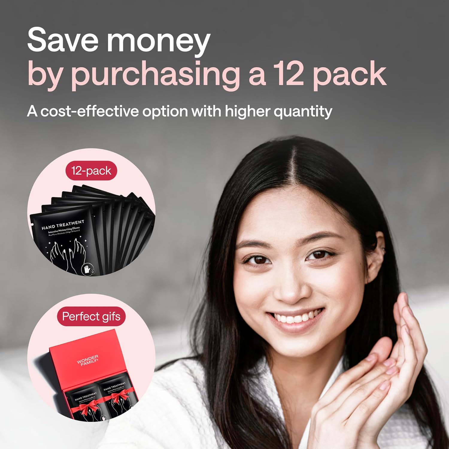 Korean Hand Masks Moisturizing Glove for Dry Hands - Hand Moisturizer Gloves for Women, Men - Hand Therapy Gloves with Collagen, Rose Oil, Shea Butter - White Hydrating Korean Hand Mask Bulk, 12 Pack