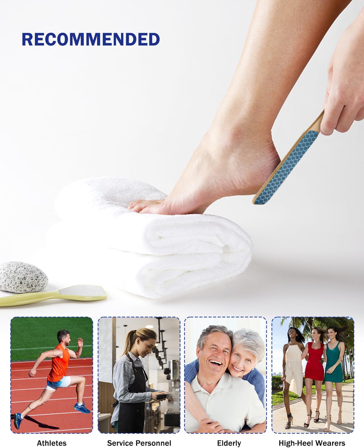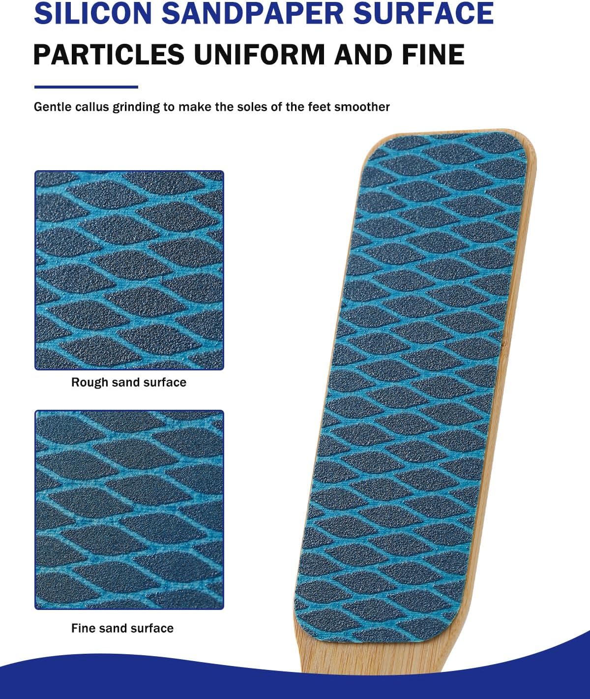 BEZOX Foot File Callus Remover with Bamboo Handle(1 PCS), Double-Sided Portable Foot Sander, Professional Pedicure Heel Scrubber for Smooth and Beautiful Feet - Blue