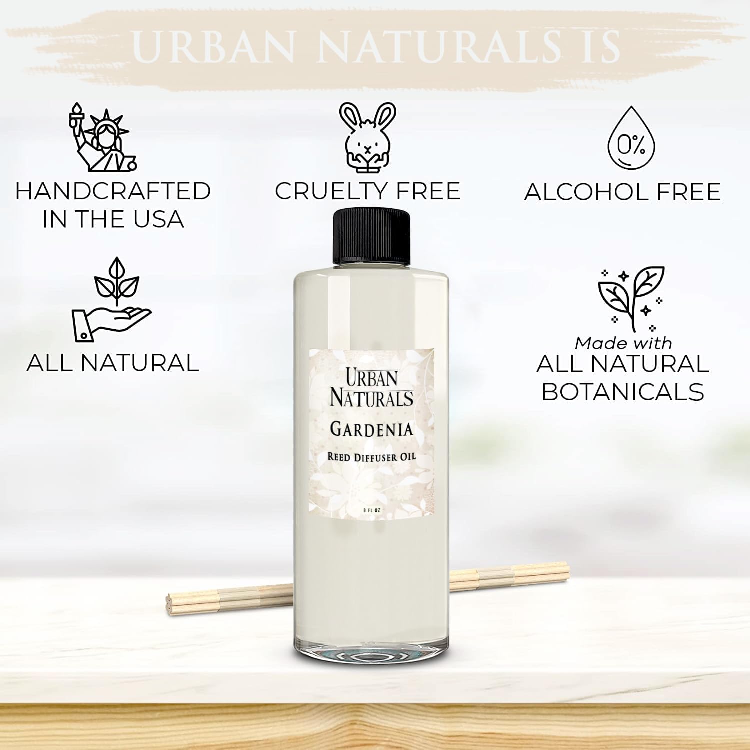 Urban Naturals Reed Diffuser Oil Refill Flower Shop with Violets, Daisies, Green Stems, Hyacinth, Rose 8 oz + Free Reed Sticks, Made in The USA