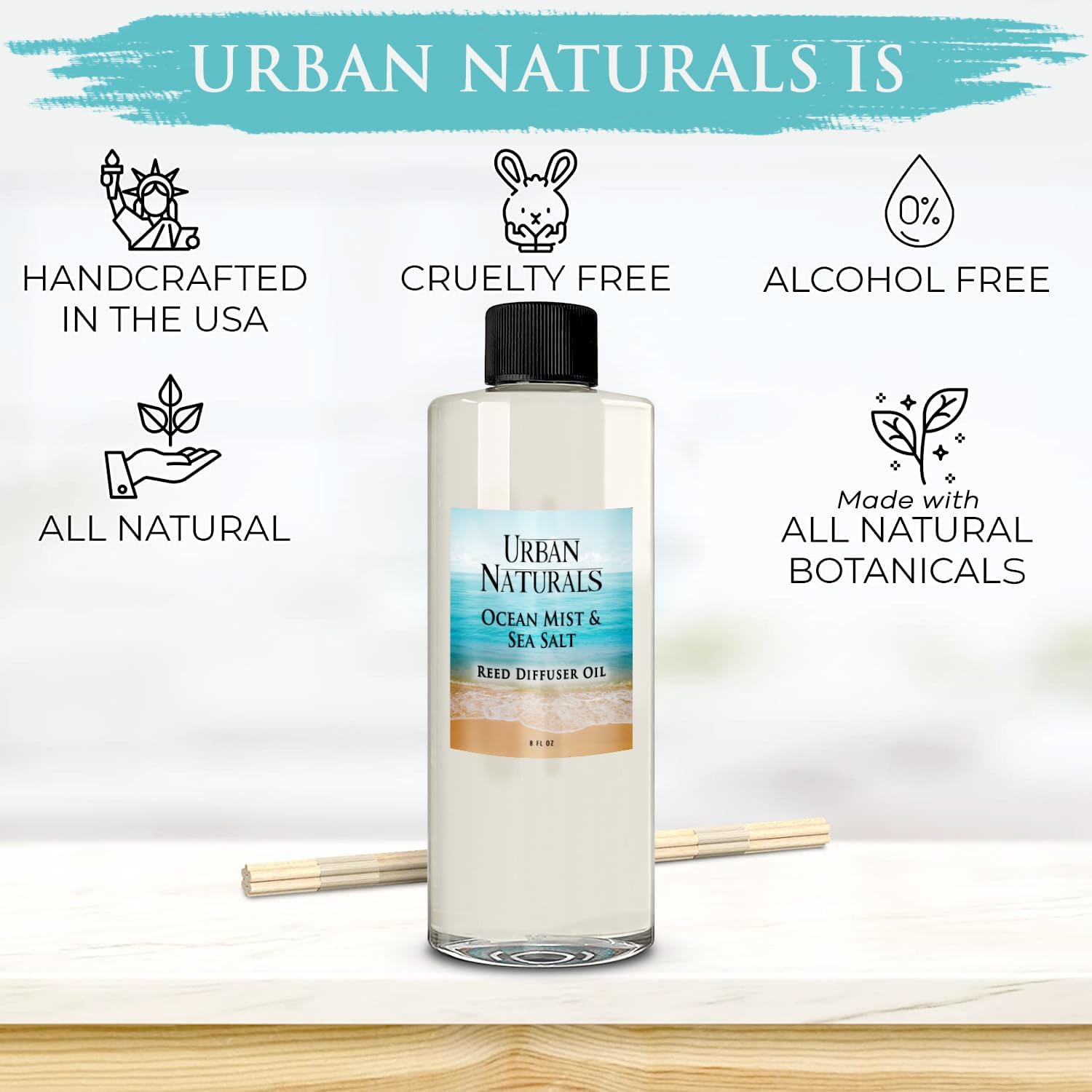 Urban Naturals Reed Diffuser Oil Refill Ocean Mist Sea Salt with Salt Spray, Violet Leaf, Sea Grass, Driftwood 8 oz + Free Reed Sticks, Made in The USA