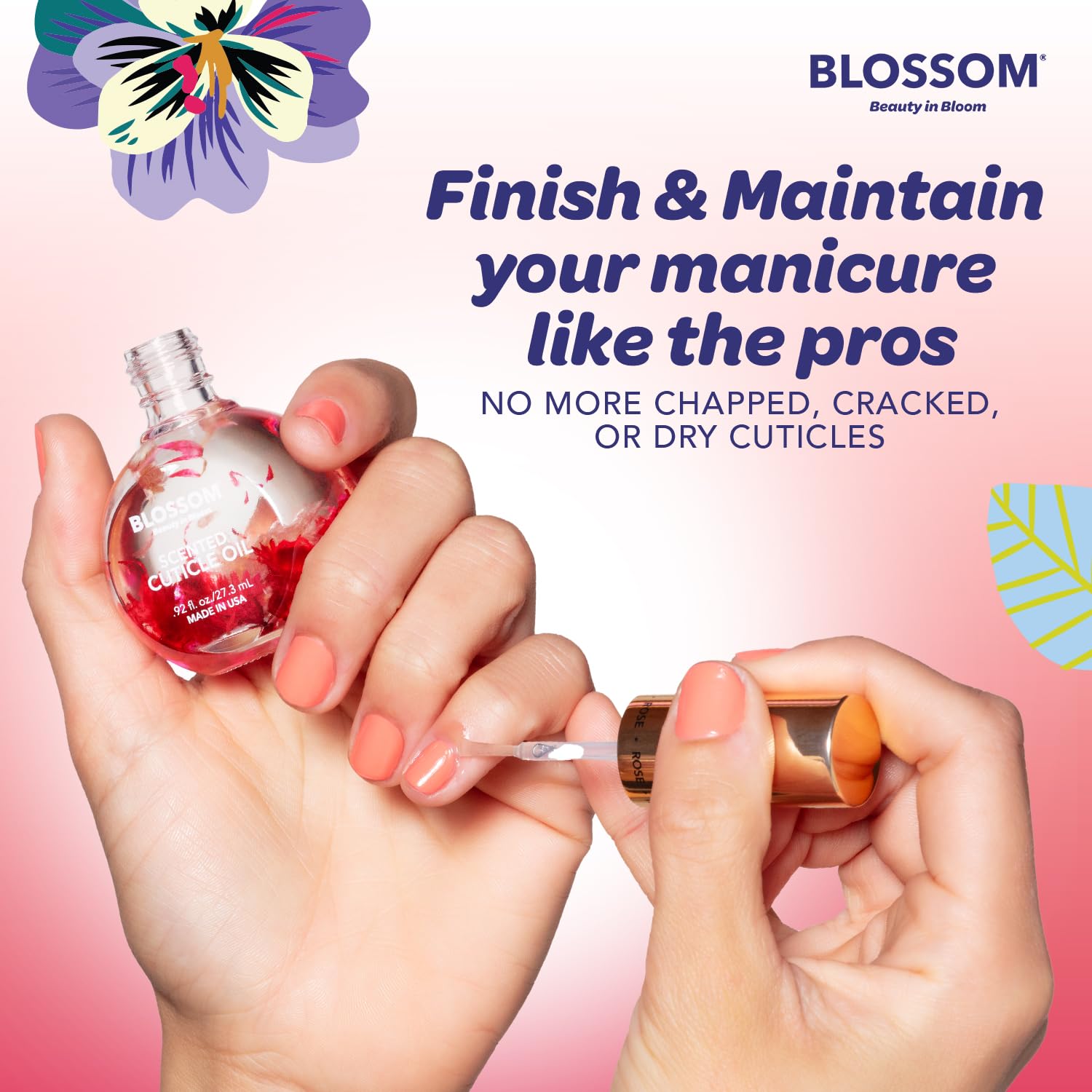 - BLOSSOM SCENTED CUTICLE OIL FOR NAILS AND CUTICLES: Choose from a variety of scented Blossom cuticle oil for nails and cuticle care, FLORAL (lavender, hibiscus, jasmine, rose, honey suckle & spring) FRUITY (cherry, grape, orange, strawberry) GOURMAND (Pumpkin Spice, Almond Biscotti, Chocolate Truffle) or Amazon Exclusive (Coconut, Lemongrass, Lily, Raspberry, Watermelon) scents in 0.5oz or 1oz bottles. Each nail and cuticle oil is infused with real flowers and makes the perfect beauty accessory