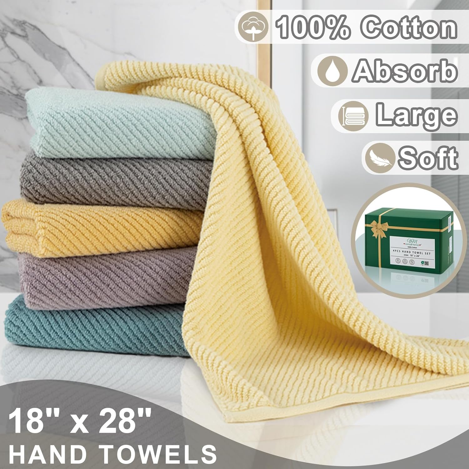 - 【Soft & Lightweight】 This set includes four lightweight hand towels, each 18 x 28 inches, made from 100% zero-twist cotton. These towels offer a luxurious feel that is both thick, soft, and large, all while maintaining a lightweight design. Ideal for daily use at home, the gym, spa, or hotel, they deliver comfort without excess weight. Fade-resistant, low-linting, breathable, and long-lasting