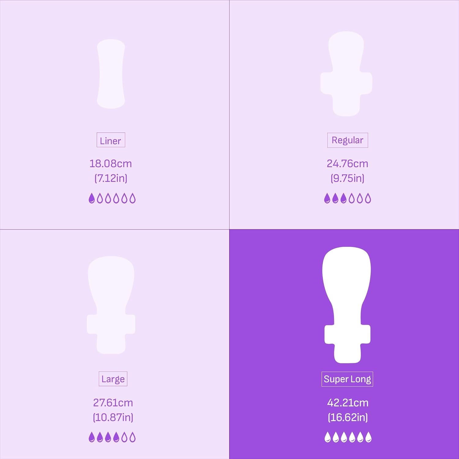Livlit Super Long Overnight Sanitary Pads, 100% Organic Cotton from Texas, Heavy Absorbency, Powerful Leak Protection, Unscented, Extra Long Length Pads for Women (10 Count)