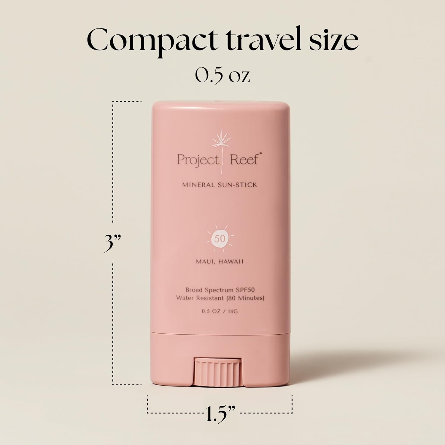 Project Reef SPF 50 Mineral Sunscreen Stick – Compact SPF Stick, Hawaii Reef Act 104 Compliant, Vegan, Ocean-Friendly, Water-Resistant, 0.5 oz