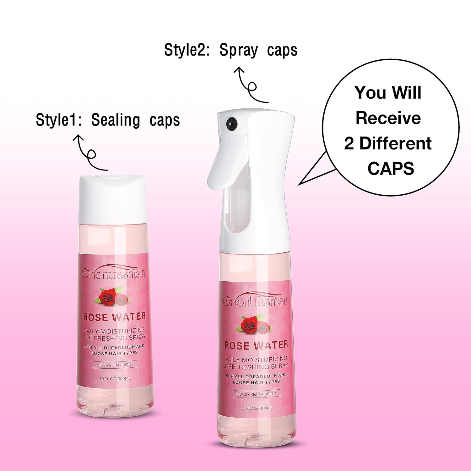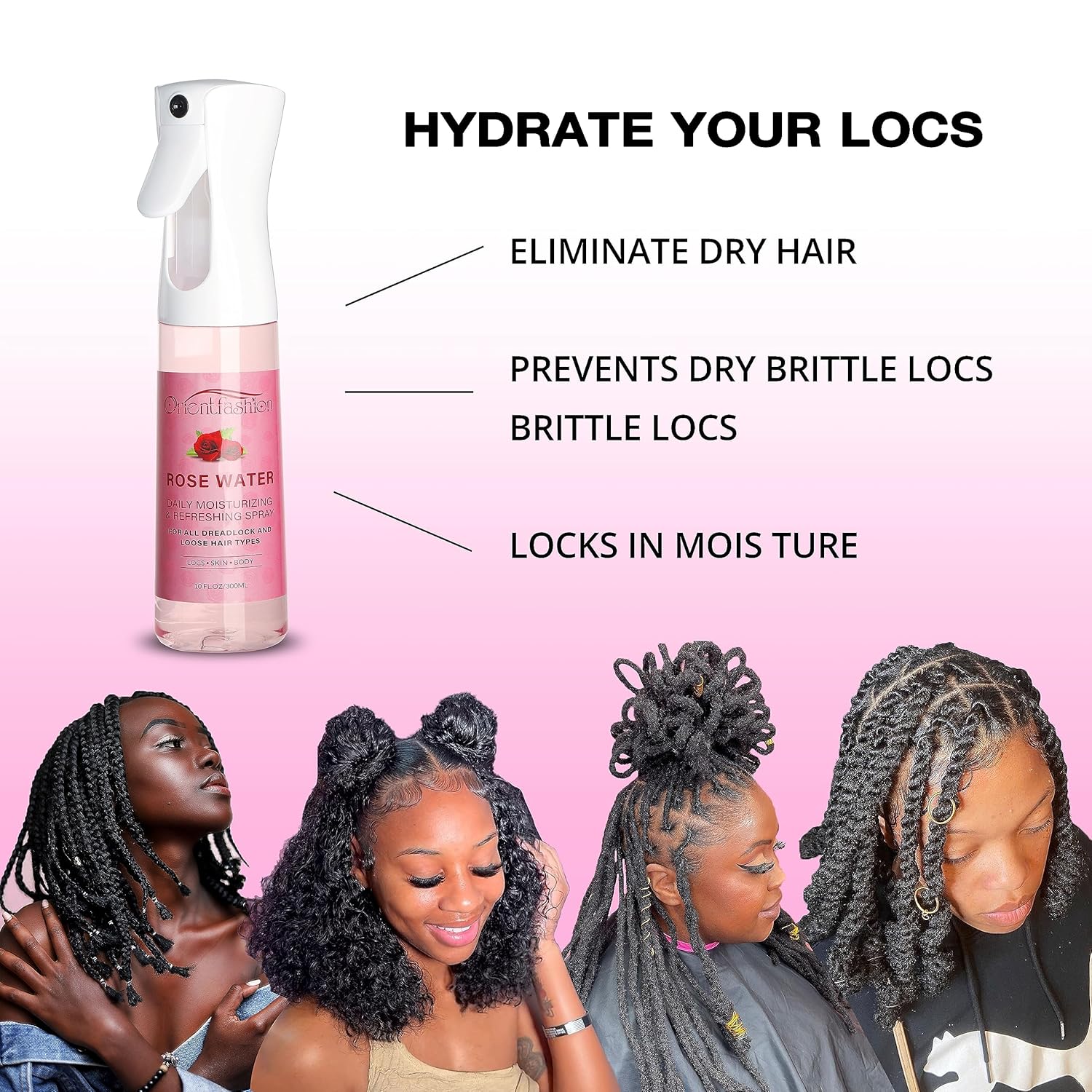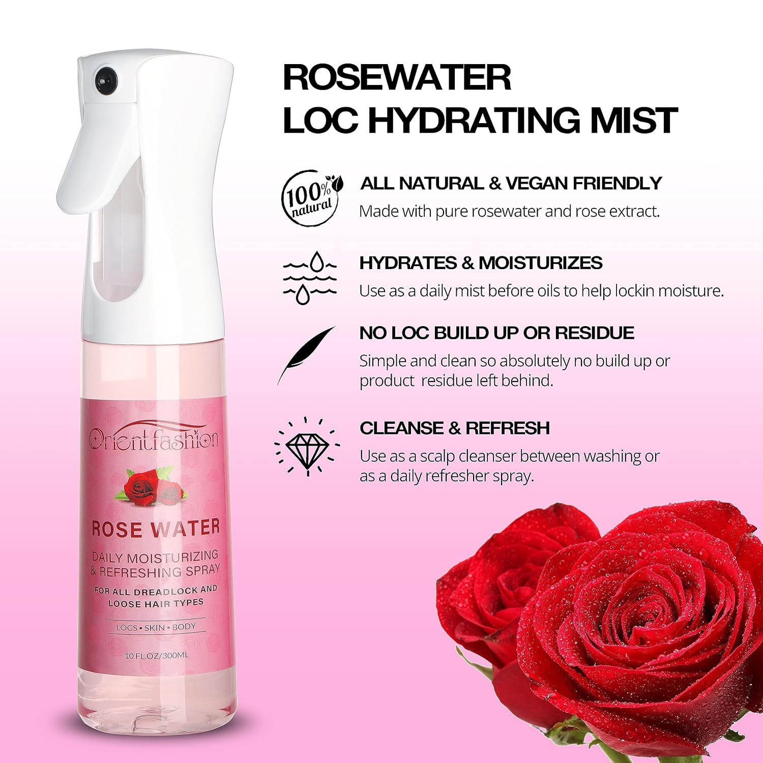 Orientfashion Moisturizing Refreshing Spray for Locs- Rose Water Hair Scalp Moisturizer, Castor Oil- Natural Loc Care and Maintenance (Rose, 10 Fl oz)