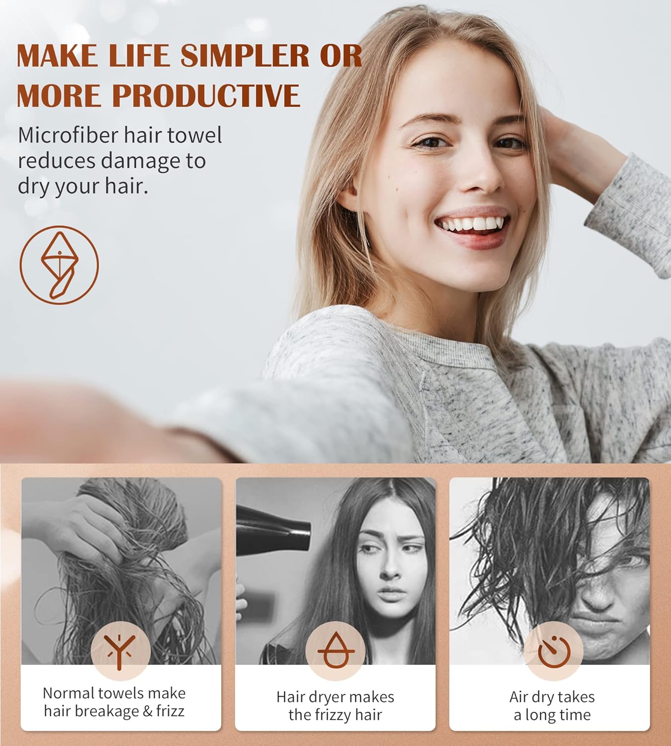 - NOT YOUR ORDINARY MICROFIBER TOWEL: Made from super-absorbent and breathable microfiber fabric, this hair towel dries your hair faster than traditional towels, saving you time while allowing it to dry naturally—no rubbing needed! It’s the perfect gift for women. Order now and get ready for the gifting season! Ideal as a Christmas stocking stuffer — or a thoughtful treat for yourself.