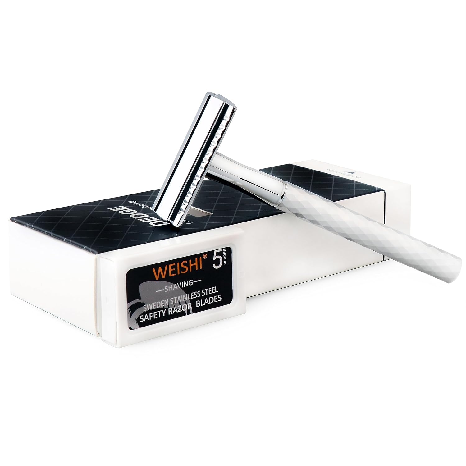 DEDGE Double Edge Eco Safety Razor Single Blade Razor for Women, Reusable Razor, with 5 Premium Razor Blades (Twinkling Silver)