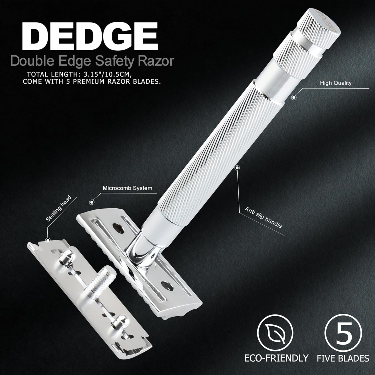 - 5.DEDGE Double Edge Safety razor is for those who enjoy a smooth and clean shave. Easy to use, this razor will help you achieve your perfect look.