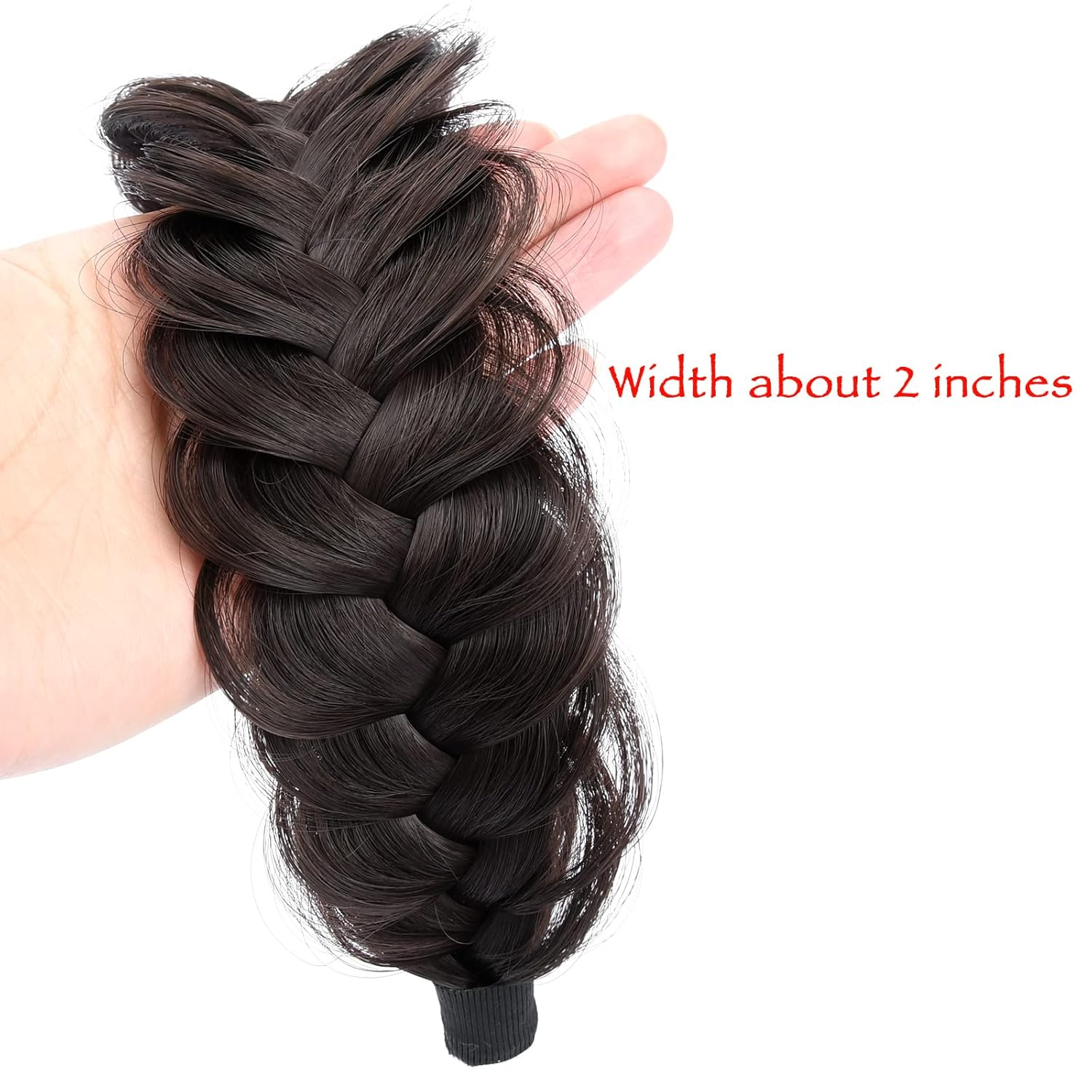 DIGUAN Wide Messy Braided Headband With Teeth Synthetic Hair Plaited Headband High Elasticity Braids Chunky Fishtail Braided Hair Band Hairpiece for Girls Women (Dark Chocolate)