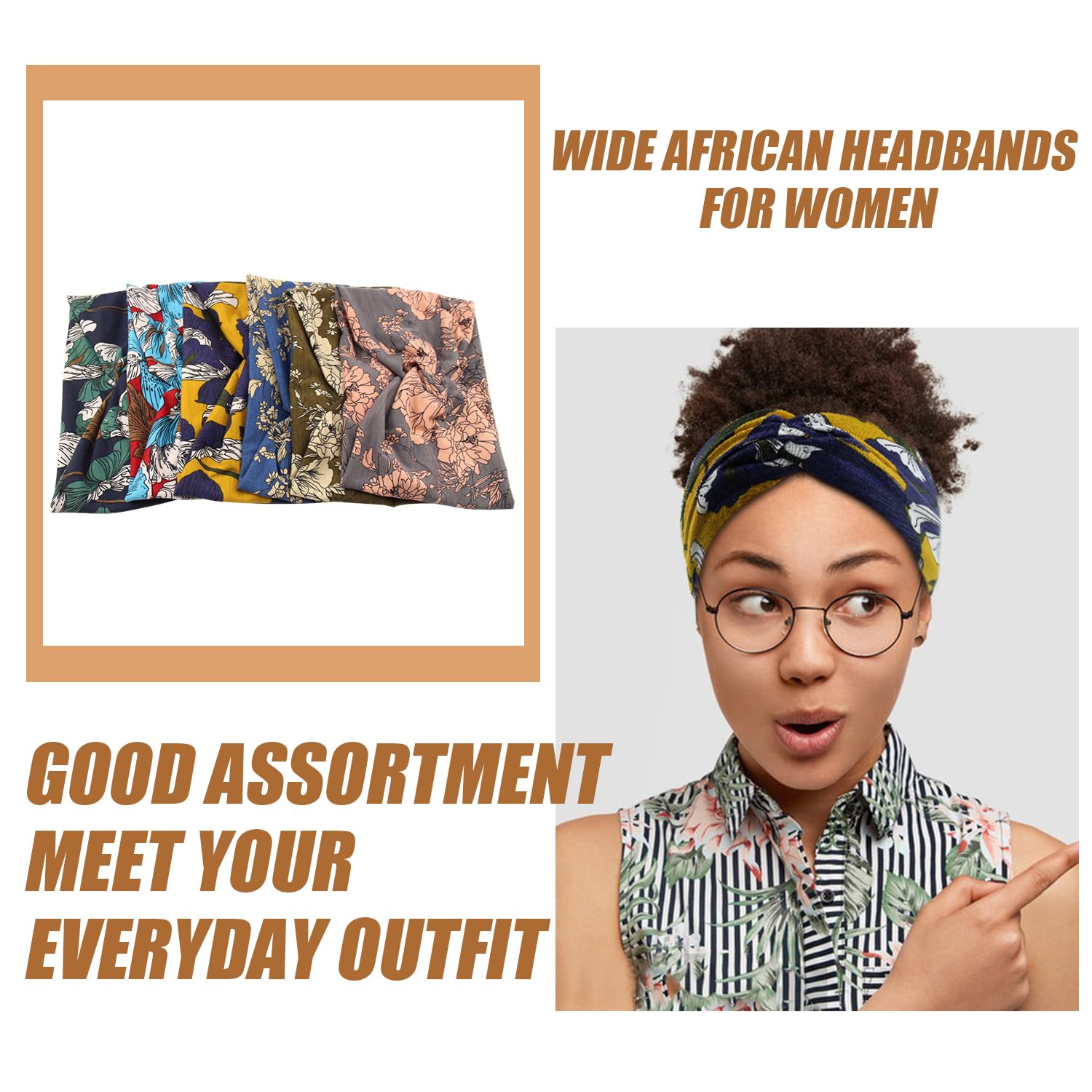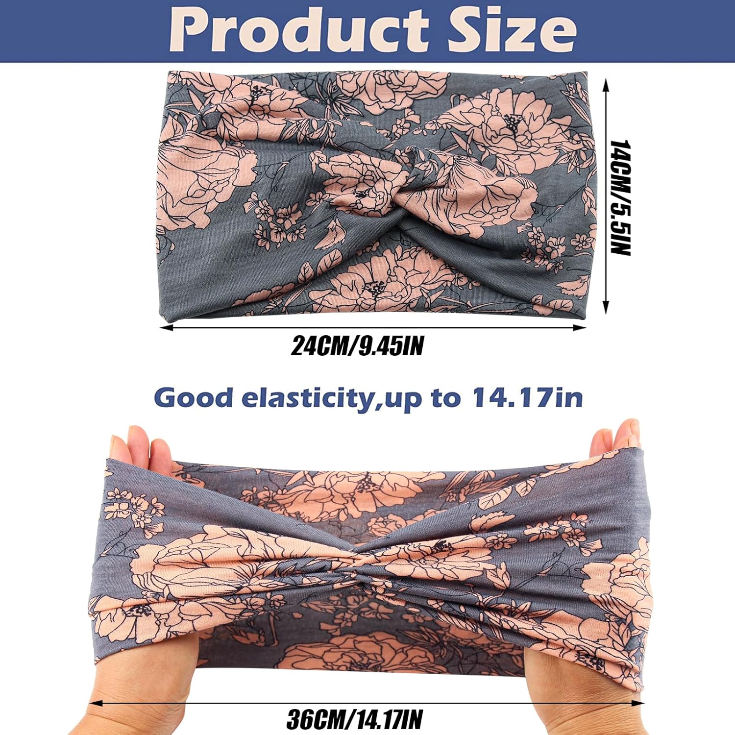 Wide Headbands for Women Girls,Floral Printed Boho Headband Turban Knot Hairband Twist Workout Headbands Fashion Yoga Hair Bands,Pack of 6
