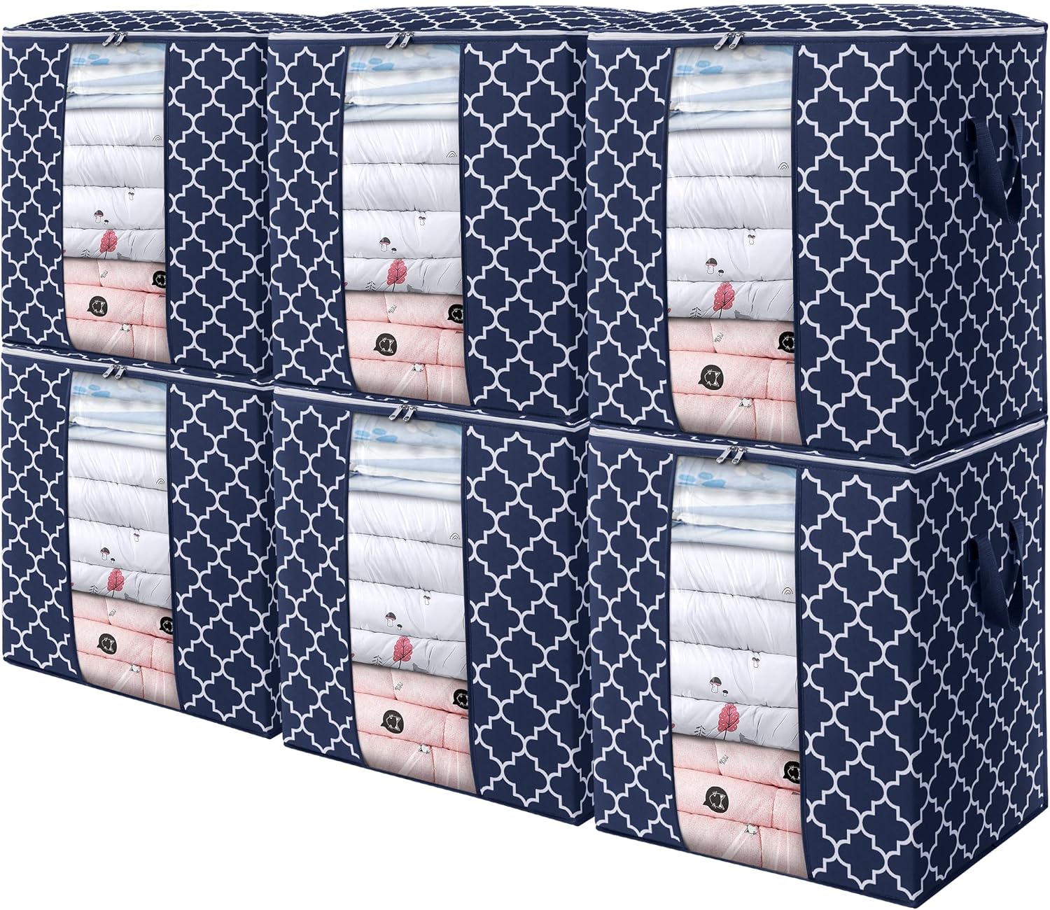 WISELIFE Storage Bags 6 Pack/100L Large Blanket Clothes Organization and Storage Containers for Comforters,Bedding, Foldable Organizer with Reinforced Handle, Clear Window, Sturdy Zippers,Blue