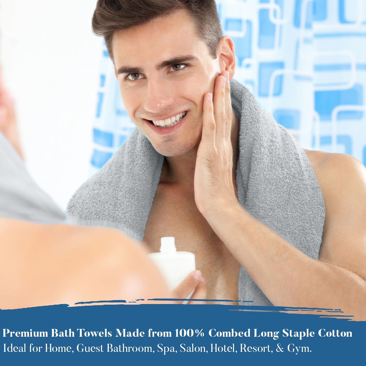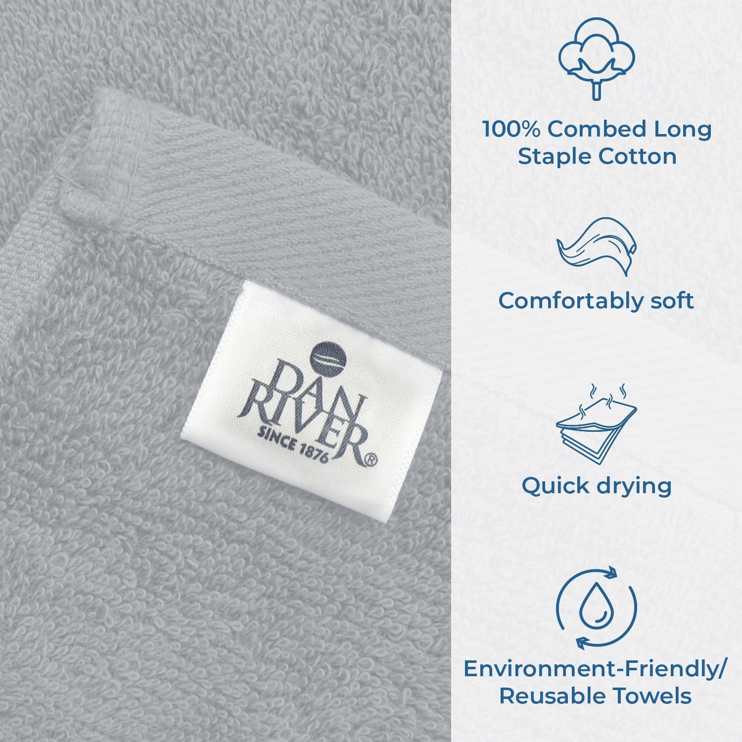 DAN RIVER Bath Towels Set of 4, 27 x 54 Inches, 100% Cotton, Larger & Lighter Weight, Quicker to Dry, Super Soft and Absorbent, Ideal Thick Towels for Daily Use, Silver