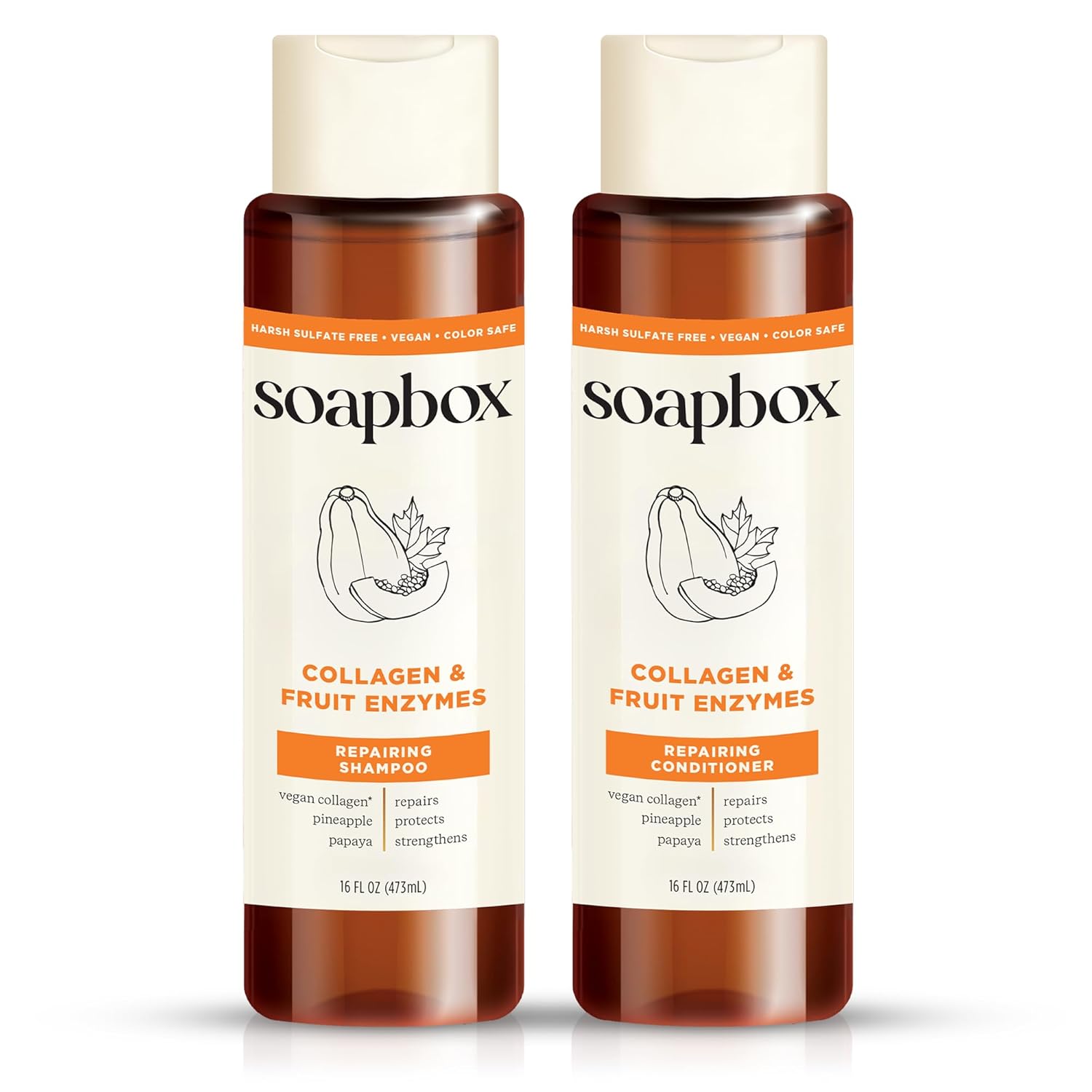 Soapbox Collagen Shampoo & Conditioner, For Dry, Fine or Thin Hair, Strengthening with Collagen & Peptides for Fuller Looking Hair, 16oz Each (Pack of 2)
