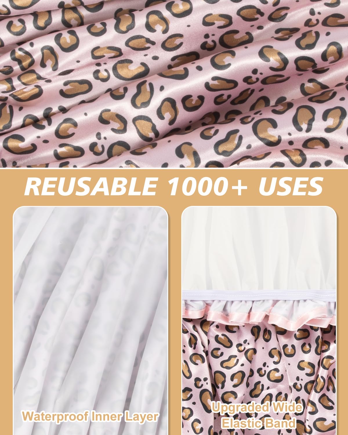 Aquior Shower Cap for Women, Reusable Shower Caps for Womens, Adult Hair Cap for All Hair, Double Waterproof EVA Lining, Leopard Shower Cap for Long Thick Hair
