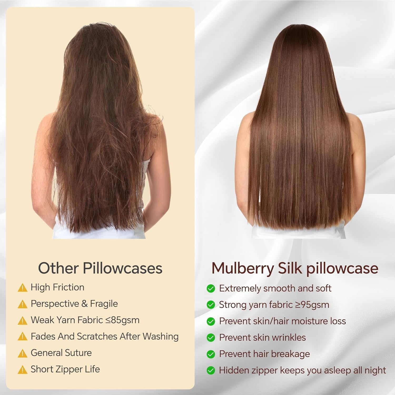 - 【Hidden Zipper Closure】--Mulberry silk pillowcases feature a hidden zipper closure, offering a sleek and stylish look, while making it easy to install and remove, maintaining a tidy appearance.