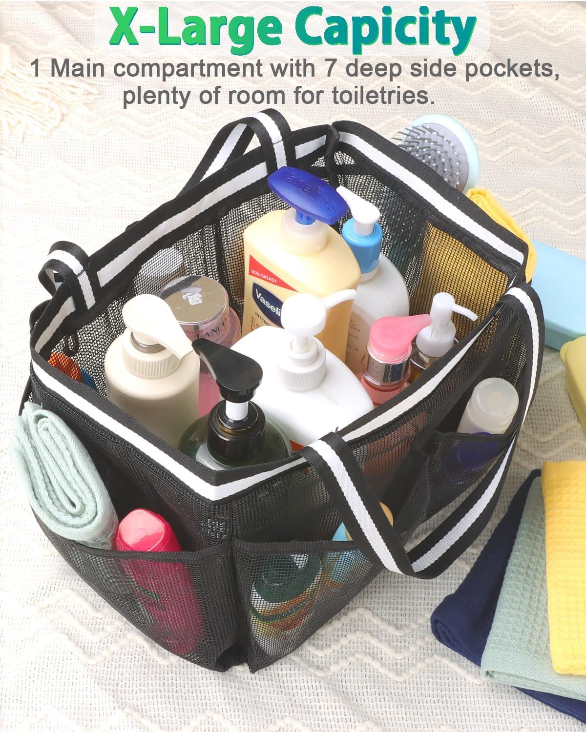 XL Mesh Shower Caddy Portable Shower Bag for College Dorm Camping Travel Gym(Black)