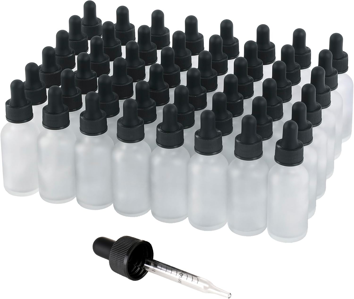 48 Pack,1oz Glass Dropper Bottle, Clear Frosted Tincture Bottles with Dropper, Pretty Finish for All Kinds of Liquids,Oil Bottles for Hair- Stronger Suction ideal for Leakproof Travel