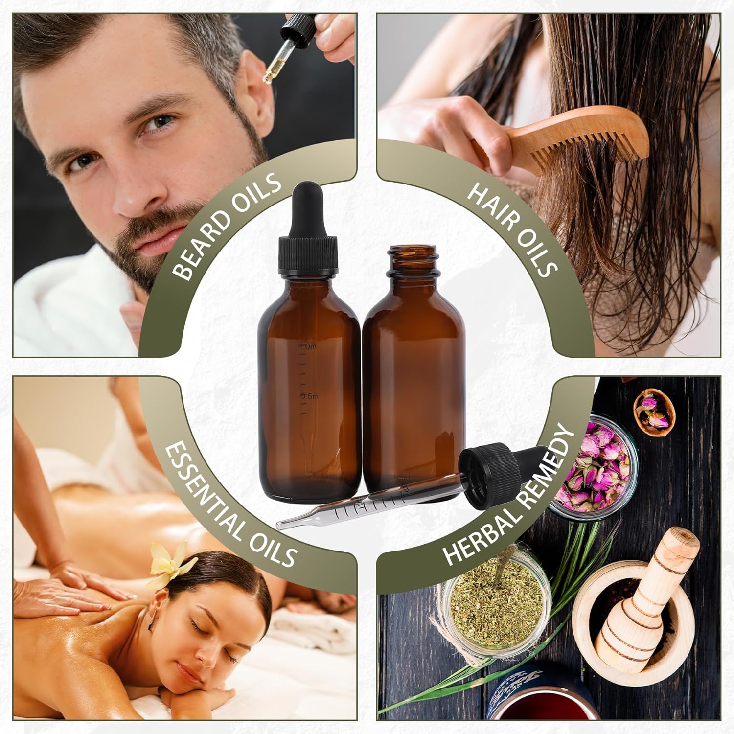 - 🧴【Multi-purpose】Eye dropper bottle can be as dispensers, you to fill in essential oils, colognes, tinctures, cosmetics, perfume oils, beard oils, hair oils or other liquids.This makes it easy to show samples to clients in your massage, beauty shop, hair salon, aromatherapy and alternative medicine practice.