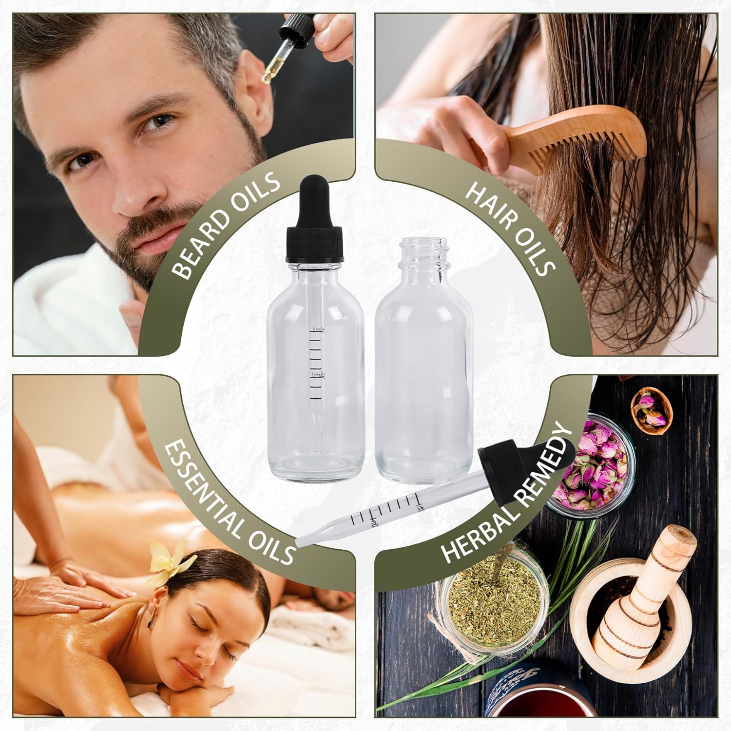 - 🧴【Multi-purpose】Eye dropper bottle can be as dispensers, you to fill in essential oils, colognes, tinctures, cosmetics, perfume oils, beard oils, hair oils or other liquids.This makes it easy to show samples to clients in your massage, beauty shop, hair salon, aromatherapy and alternative medicine practice.
