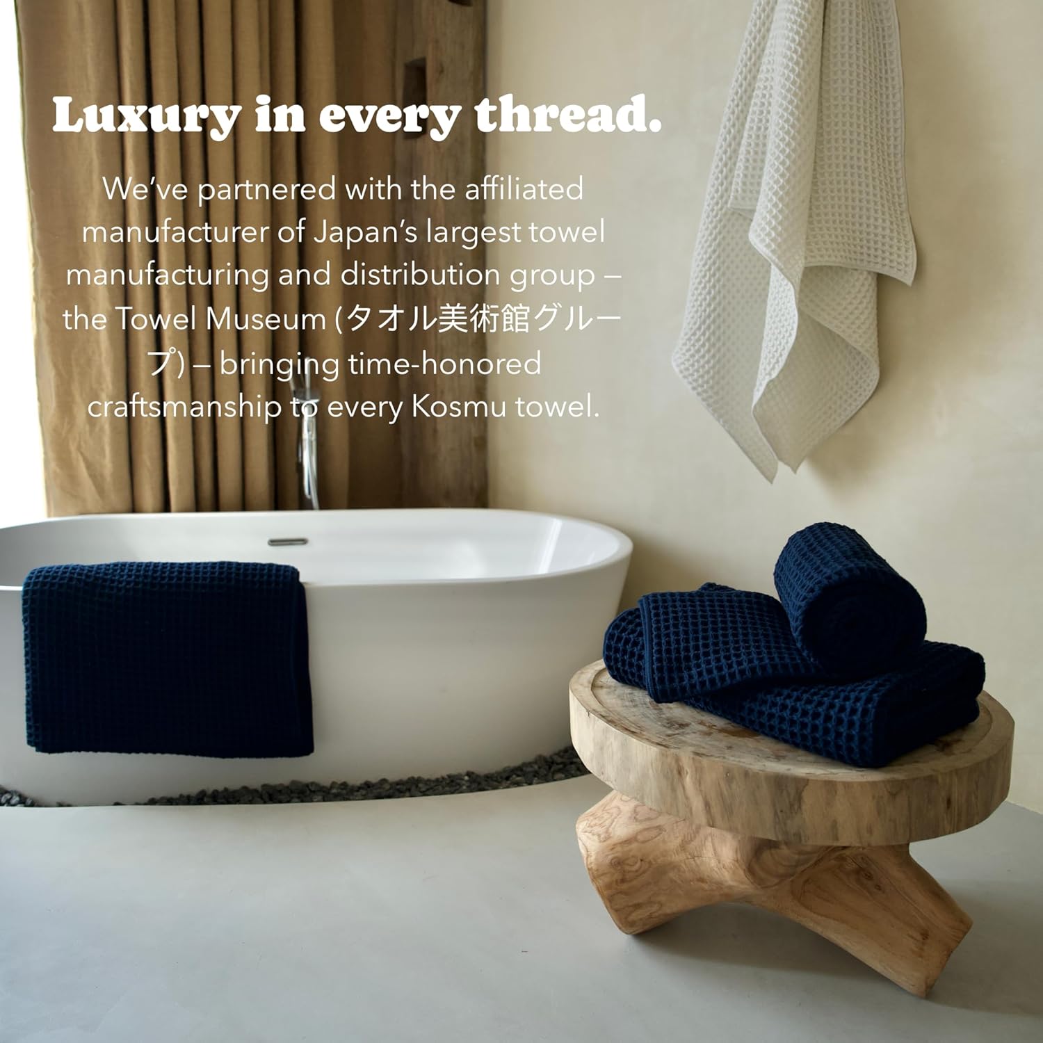 - Get bone dry every A.M.: While the waffle structure intrinsically maximizes surface exposure for airflow for guaranteed breathability, allowing the towel to dry itself out quickly, we have fundamentally improved the performance of Kosmu Towel with advanced science and technology.