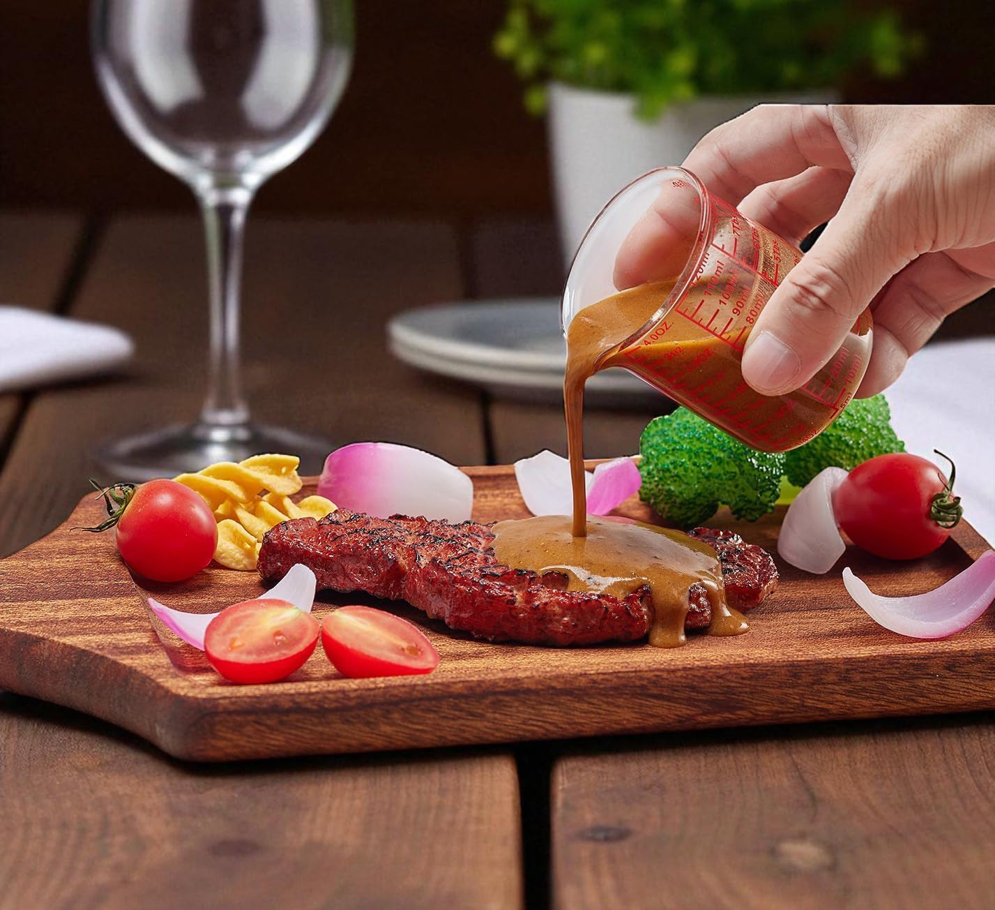 - Dishwasher safe, yet best to wash by hand since, over time, dishwashers can affect measurement markers.3 different measurement scales, including Cup, ML, OZ.