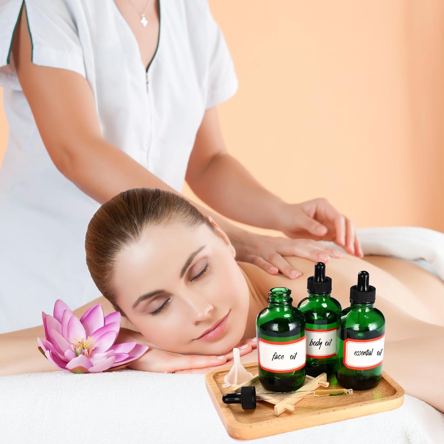Dandat 50 Pack 4 oz Glass Dropper Bottles Leakproof 120 ml Glass Tincture Bottles with Eye Droppers, 4 Funnels, 54 Labels for Essential Oil Perfumes Hair Oil(Green)
