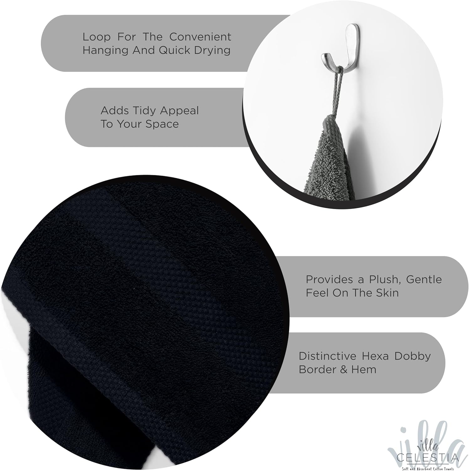 100% Cotton Bath Towel Set of 24-6 Bath Towels, 6 Hand Towels, 12 Wash Cloths, Sustainable, Soft, Highly Absorbent, Combed Cotton 24 Piece Set for Hotels, Spa, Bathroom, Dorm, Black