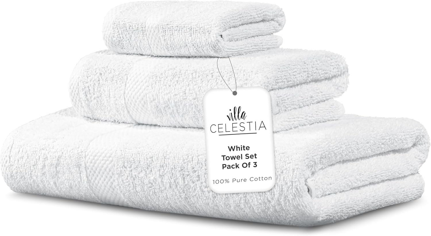- VILLA CELESTIA LUXURIOUS TOWEL SET (PACK OF 3): Uplift your mood and bathing experience with the super soft and luxurious touch of our Villa Celestia Bath Towels Set. Bundled in a 3 pack design, our towel sets for bathroom consists of 1 Bath Towel (27β X 54β), 1 Hand Towel (16β X 28β), and 1 Washcloth (12β X 12β), giving you the complete package of comfort, indulgence, and delight.