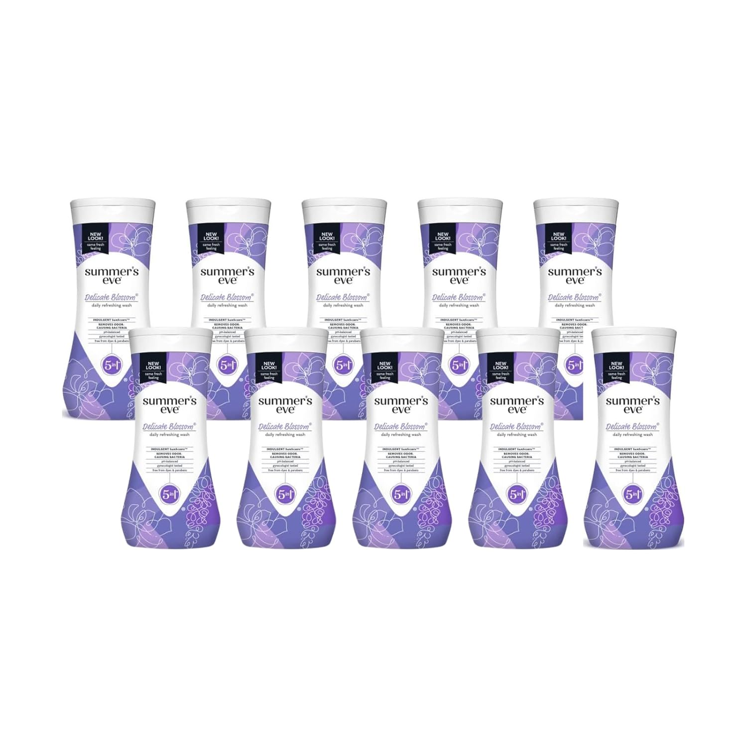 Summer's Eve Delicate Blossom Daily Refreshing Feminine Wash, Removes Odor, pH balanced, 15 fl oz. (Pack of 10)