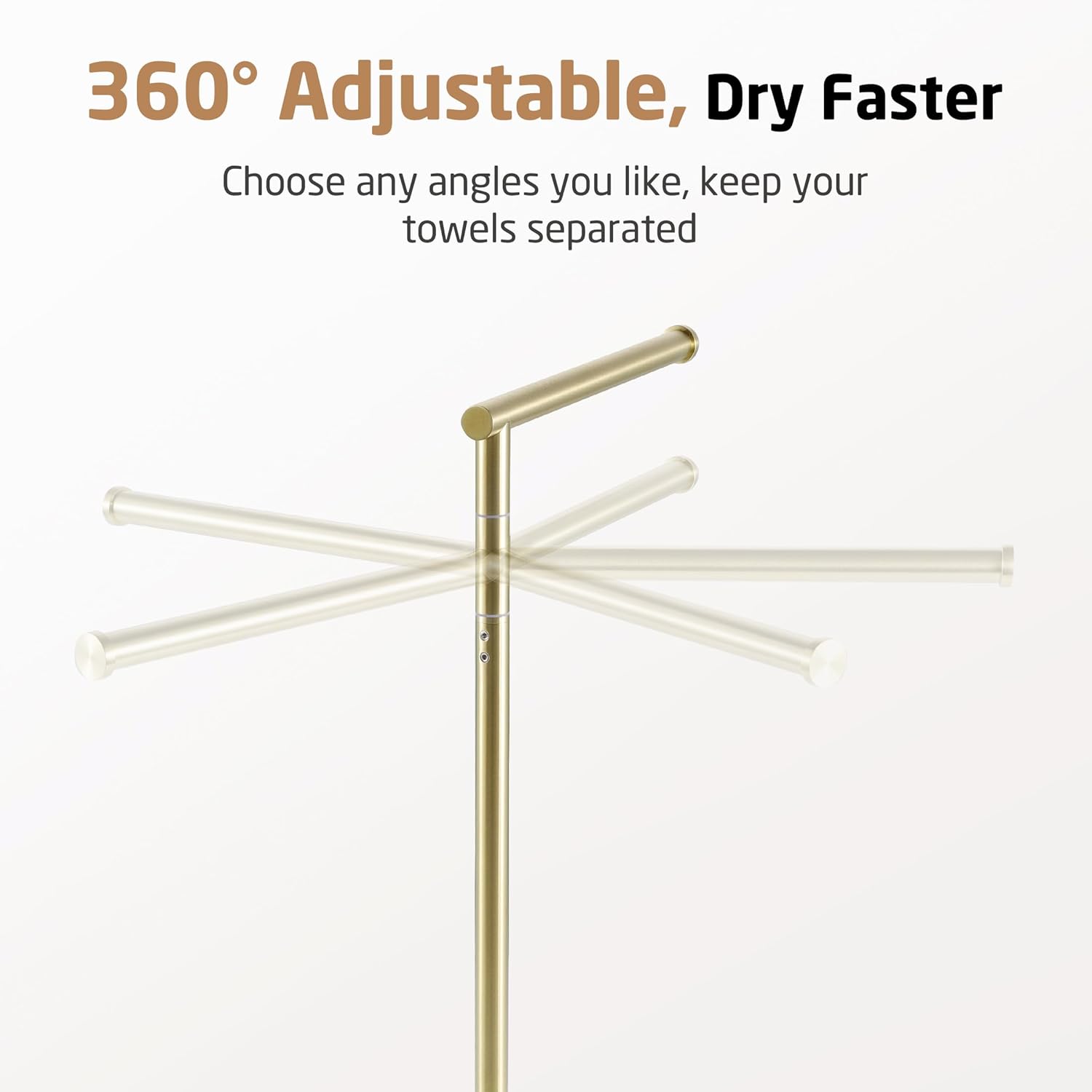 - [Swivel Arms for Faster Towel Drying] This bathroom towel rack has two arms and the lower arm can rotate 360 degrees, allowing dry and wet towels to be staggered for quicker drying. With a total height of 19.92 inches (500mm), it can accommodate towels of various sizes without touching the countertop.