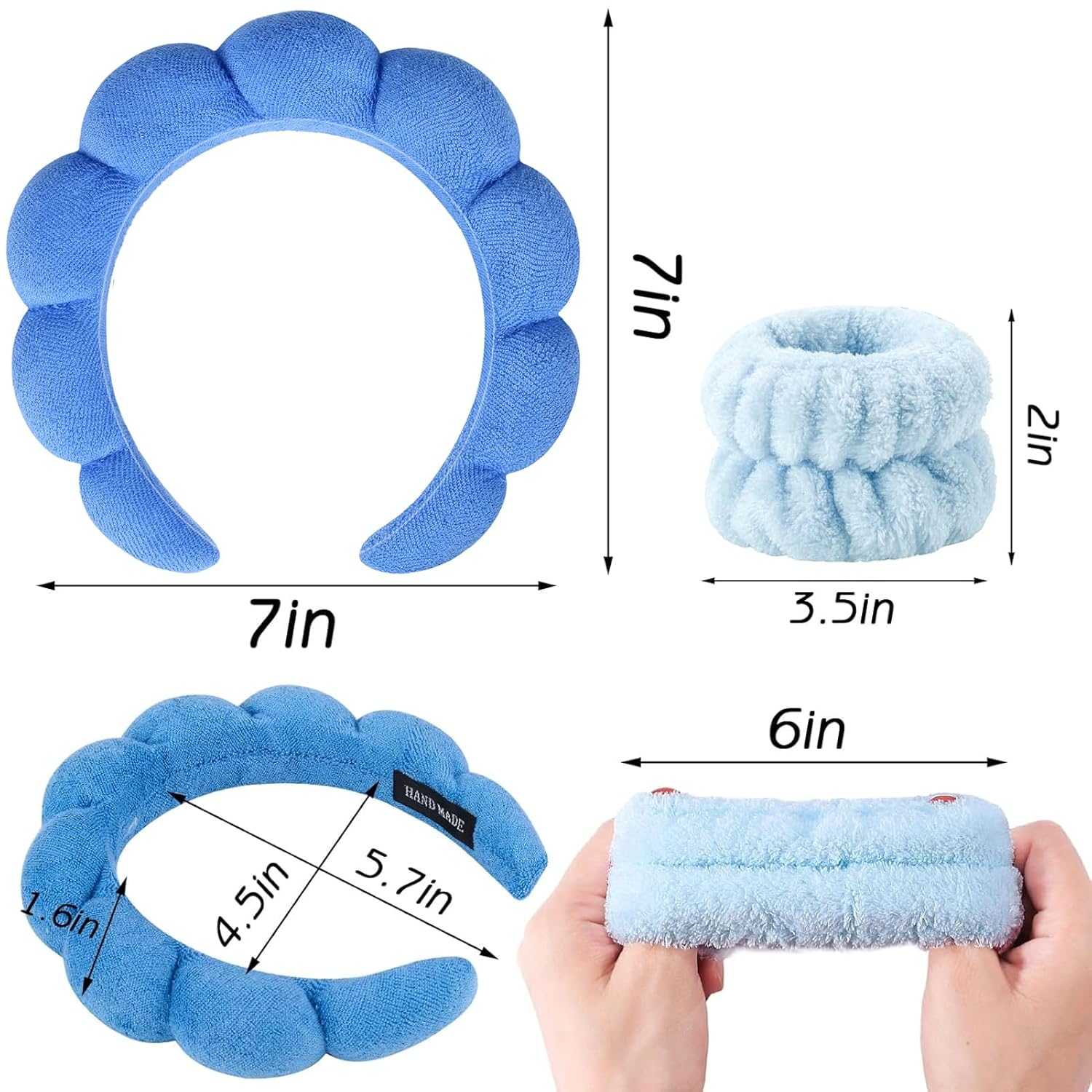 - WIDELY USED: Our treatment headbands are multi-functional headbands plus wristbands set, not only can you wear them while washing your face, skincare and make-up, but also while doing yoga, our bubble cloud Headband absorbs sweat and water and also holds our hair in place well. The unique cloud shape design can also well modify your hair style, suitable for all occasions, comfortable to wear can make you relax all day long