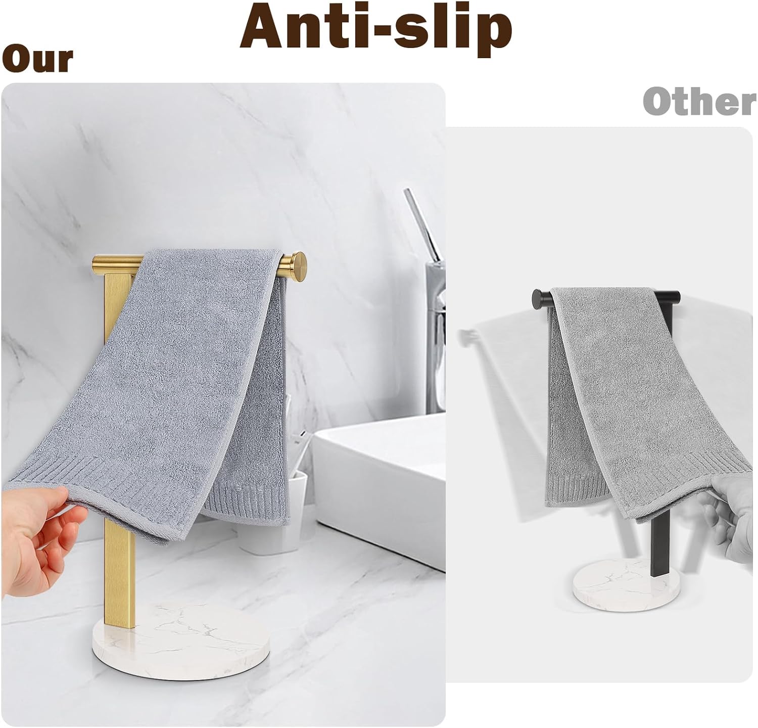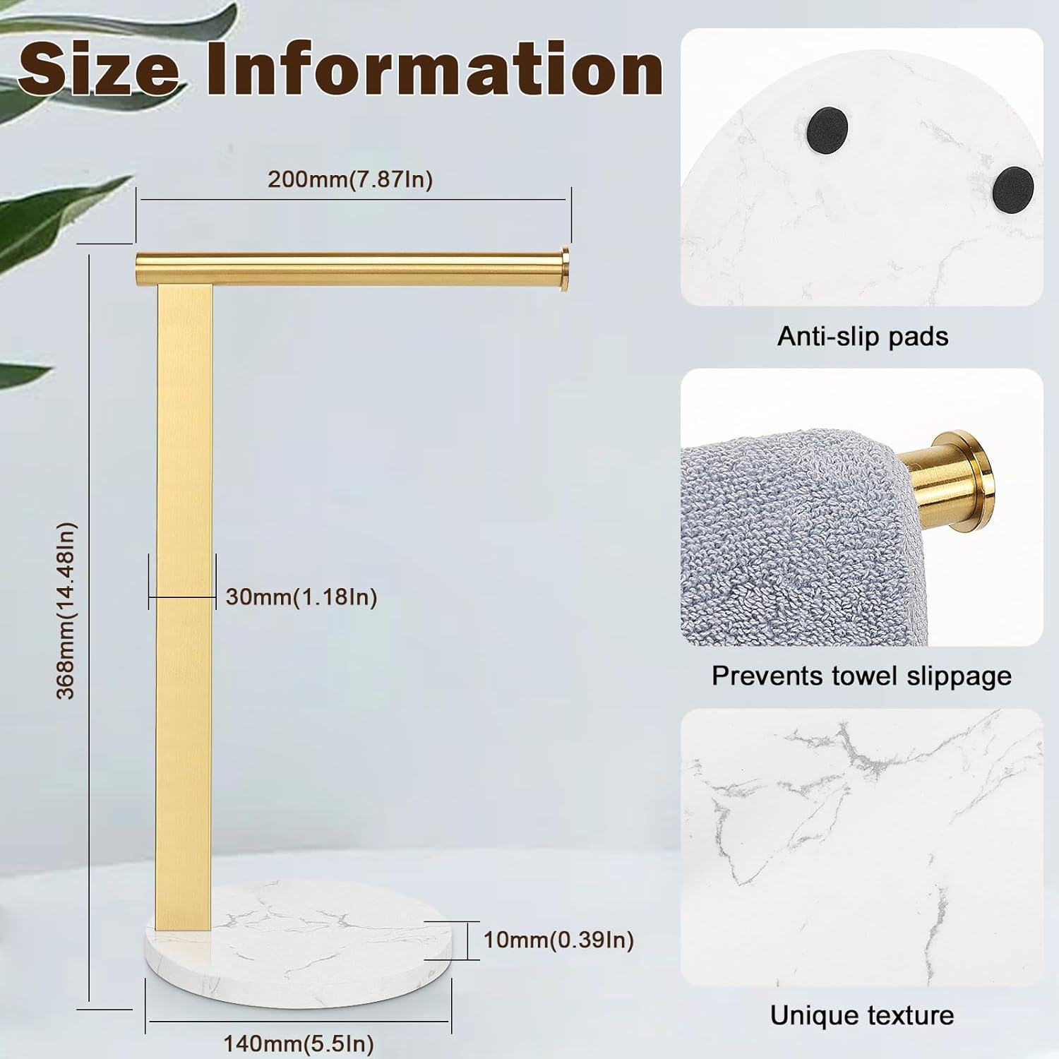 - MARBLE BASE: The base of the towel rack is made of thickened natural marble, with an elegant and unique texture; Equipped with non-slip pads, hand towel holder are not easy to tip over