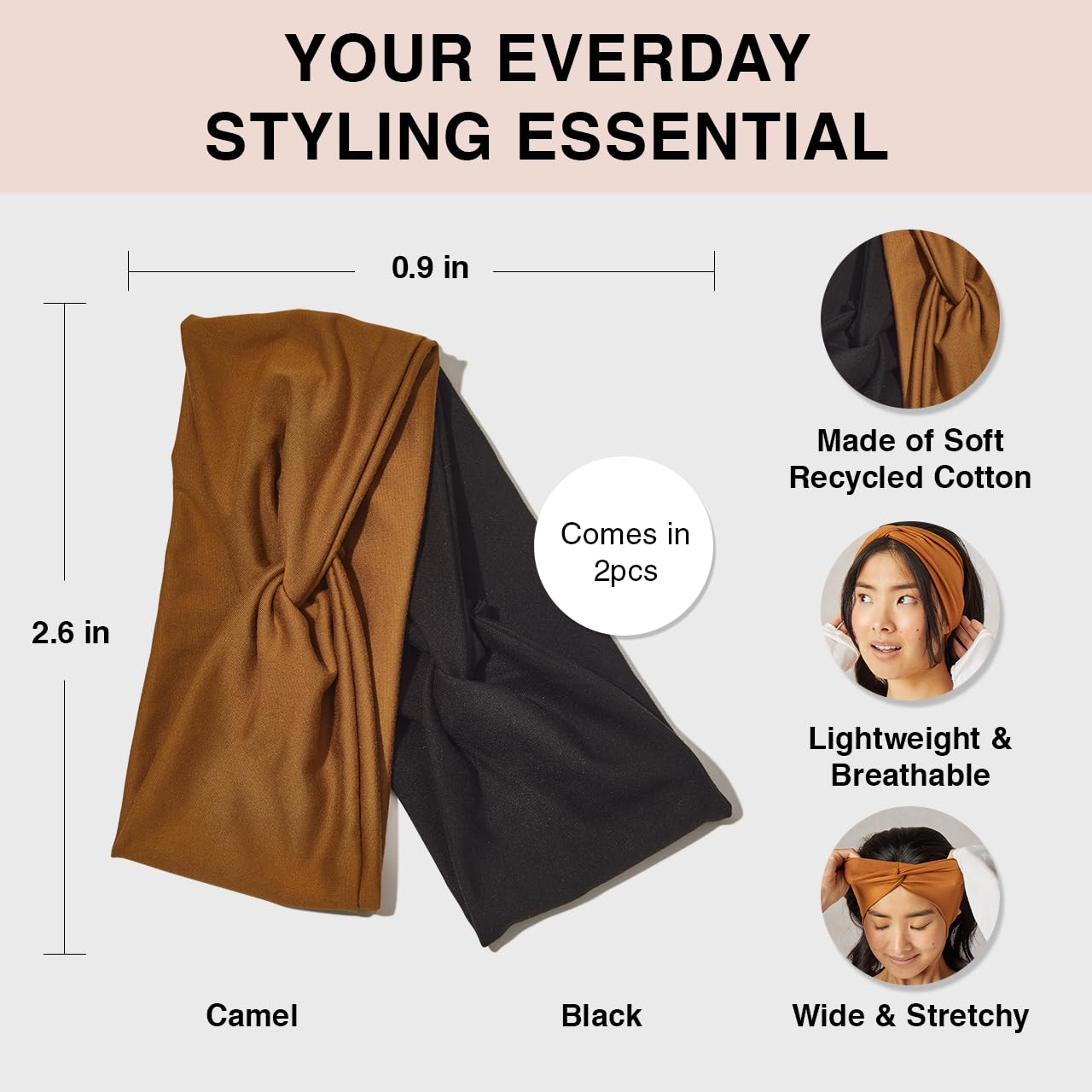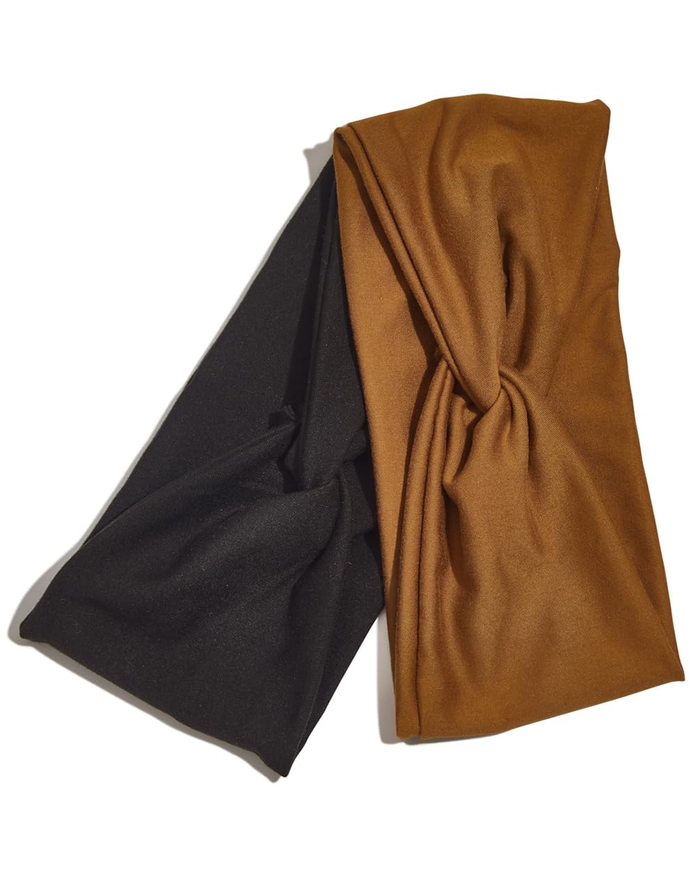 Kitsch Wide Headbands for Women - Fashion Sports Headband for Workout, Yoga, Gym, Running, Exercise | Stretchy Head Bands | Ideal Gifts for Women - Black and Camel, 2pcs