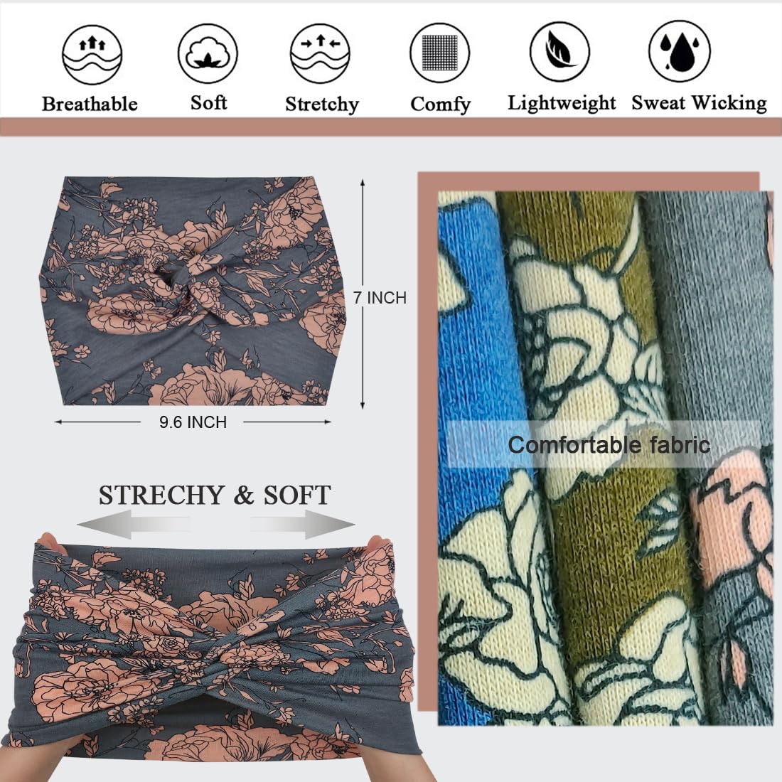 Boho Extra Wide Headbands For Women 7'' Large Headband Twist Head Bands Women's Hair Band Stretchy Turban Styling Accessories 8 Pack
