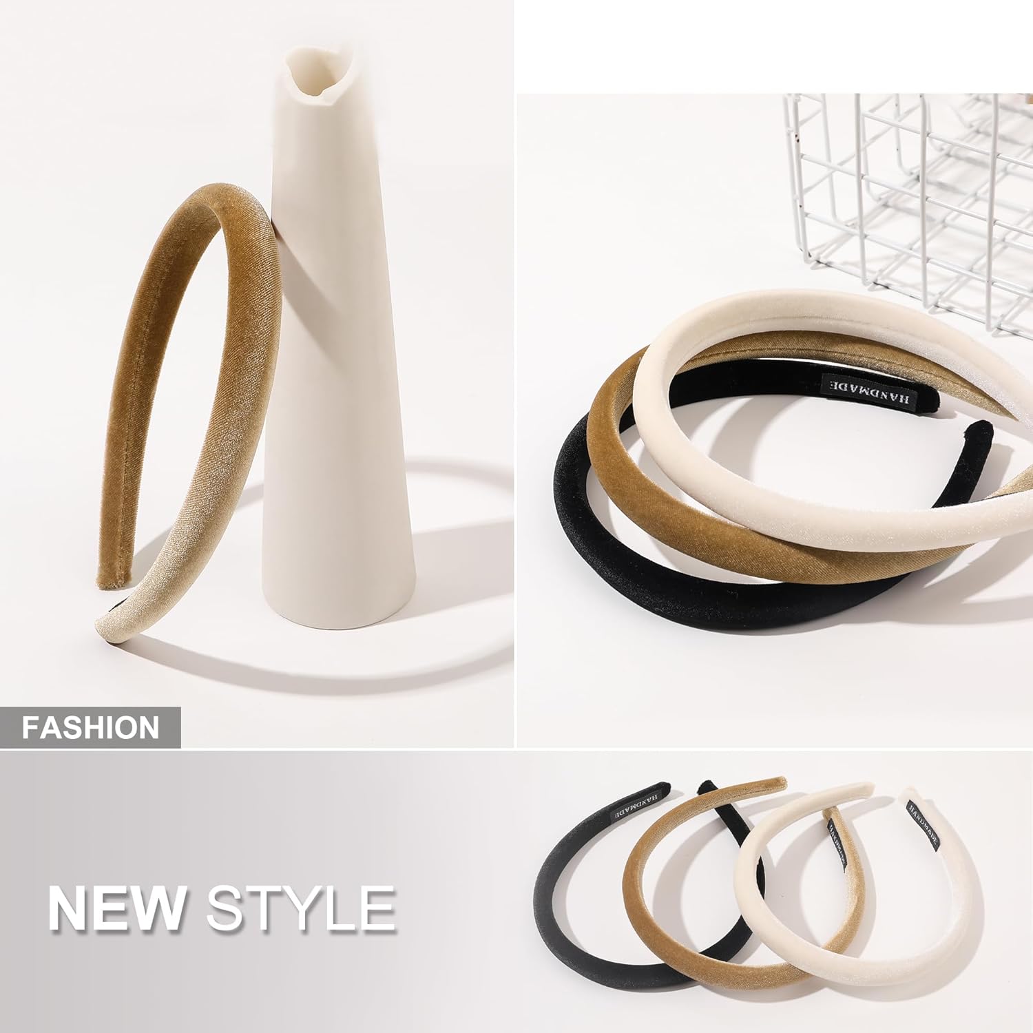 - PACKAGE INCLUDE: 3 pcs of Velvet Padded Headbands for Women including Black, Beige, Coffe Brown headbands.
