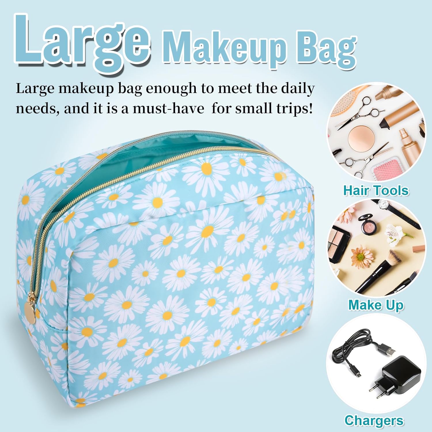 - ❤【Multiple Sizes & Colors】Large, Small, Mini, or Slim, we have it all! Cosmetic bags are available in many colors: Blue-Daisy, Green-Daisy, White-Flower, Pink-Flower and other colors for you to choose. Nylon makeup bag for purse can be used for travel, outdoors and organization, it can be used as a purse bag, travel pouch, clutch, makeup organizer and more.