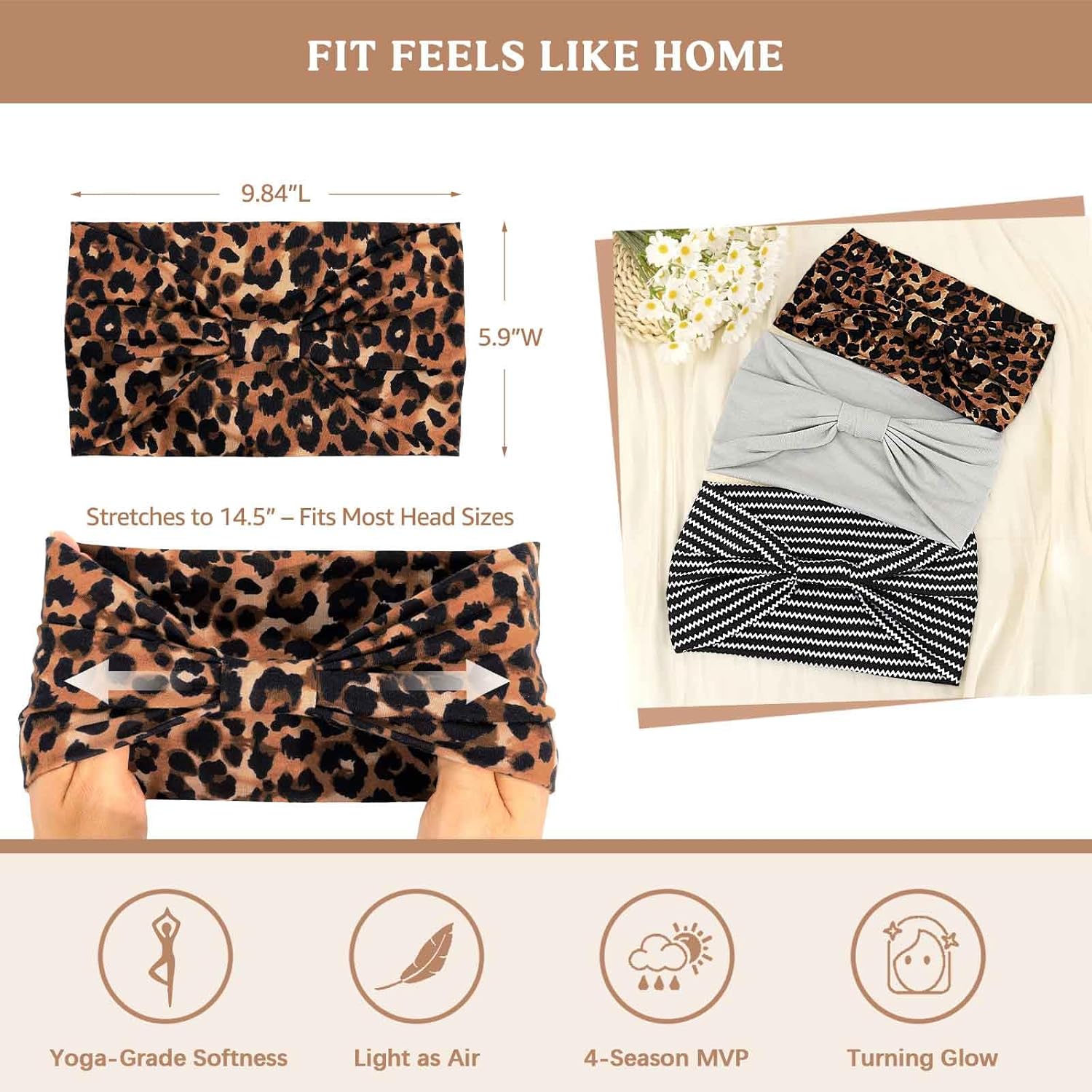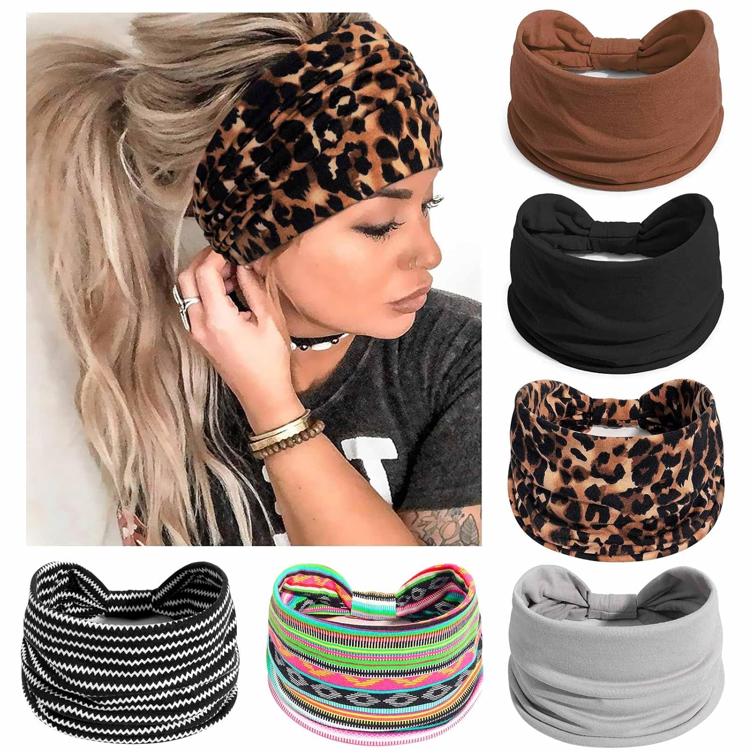 Wide Headbands for Women Knotted No Slip Head Bands Soft Turban Headband Hair Accessories Boho African Solid Color Head Wraps for Women Yoga Workout Pack of 6
