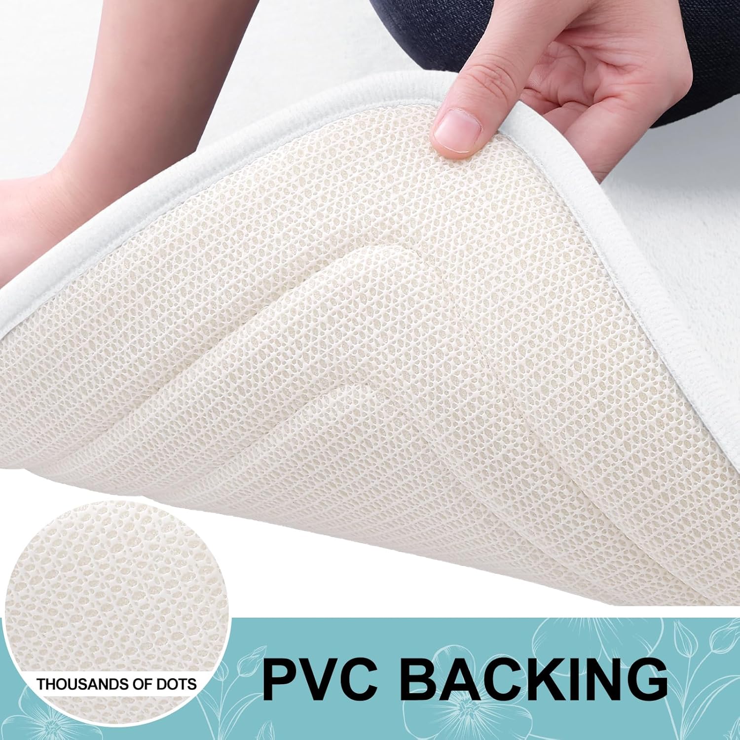- [STABLE FOOTING] Our bathroom mat is equipped with a robust and enduring PVC backing, preventing shifting and skidding. Unlike mats with rubber backing that may wear off after washing, our bath mat ensures lasting durability. For a secure footing, keep the floor beneath the rug dry and avoid placing it on wet surfaces.