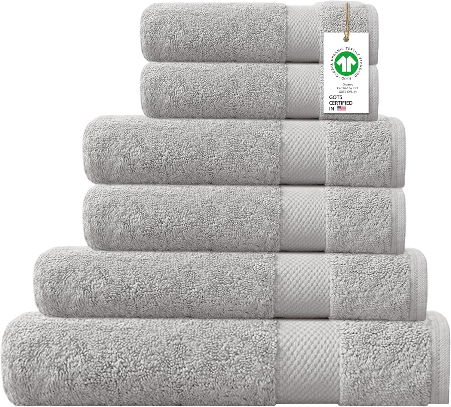 Delara 100% Organic Cotton Towels 650 GSM Plush Feather Touch Quick Dry Towel, 6-Piece Towel Set GOTS Certified, Oeko-Tex Green Certified, 1 Bath Towel, 1 Bath Sheet, 2 Hand Towels & 2 Wash Cloths