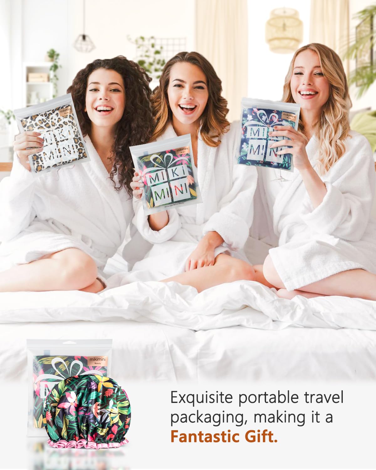 mikimini Shower Cap for Women and Grils,Pack of 2,Rainforest Bath Shower Caps with Pink Lace,Reusable Waterproof Shower Hat for Girls (Medium,Floral)