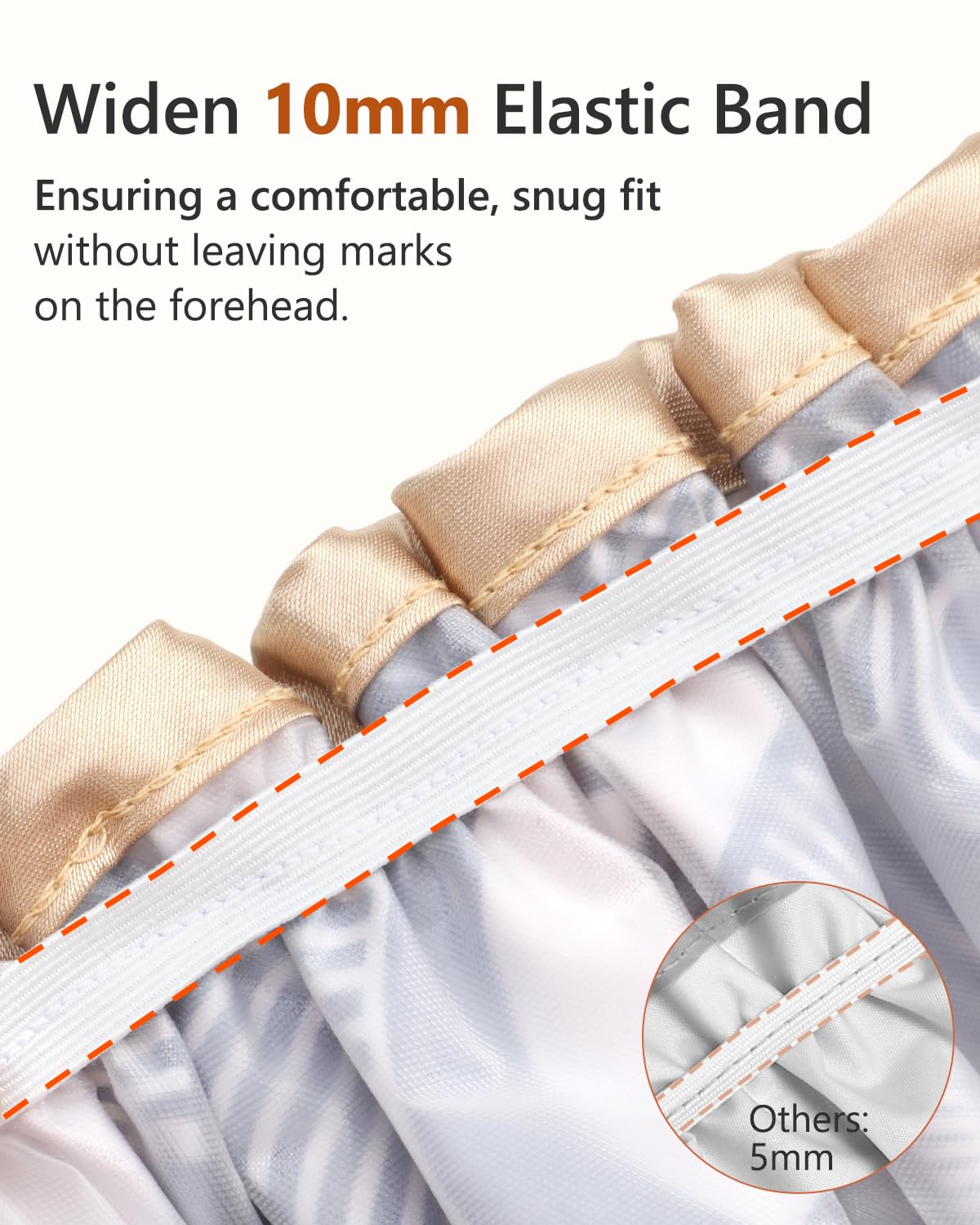 - 🎈Superb Waterproof -- This shower cap features a double layer and a wide elastic band, ensuring a snug fit without leaving marks. The unique 20mm lace curves outward at a 30-45 degree angle, effectively isolating water droplets and keeping the forehead and neck dry.