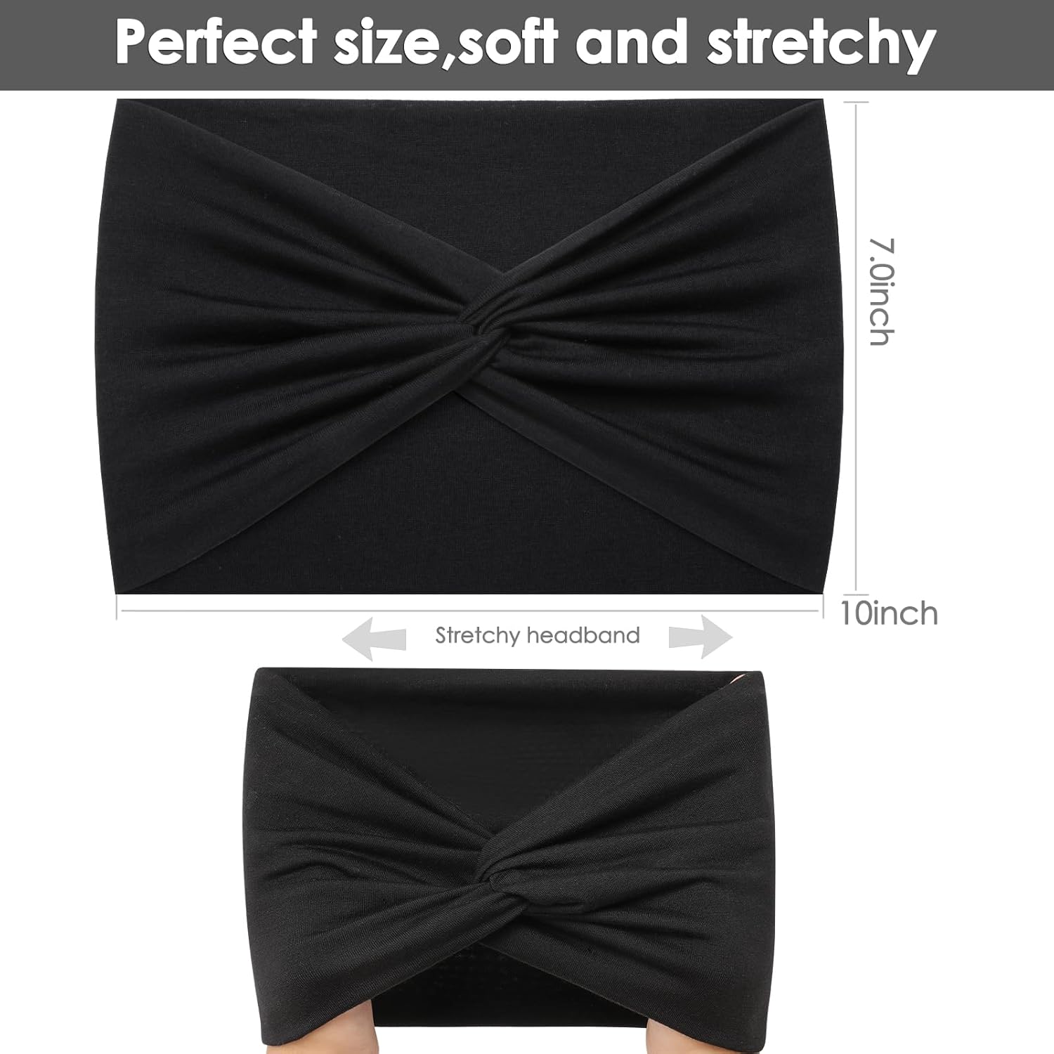 Extra Wide Headbands for Women, 7'' Large Cotton Like Turban Knotted Bandana Head Bands for Women Non Slip, Boho Headbands for Women's Hair (3Pcs White + 3Pcs Black, Extra Large 7" Wide)