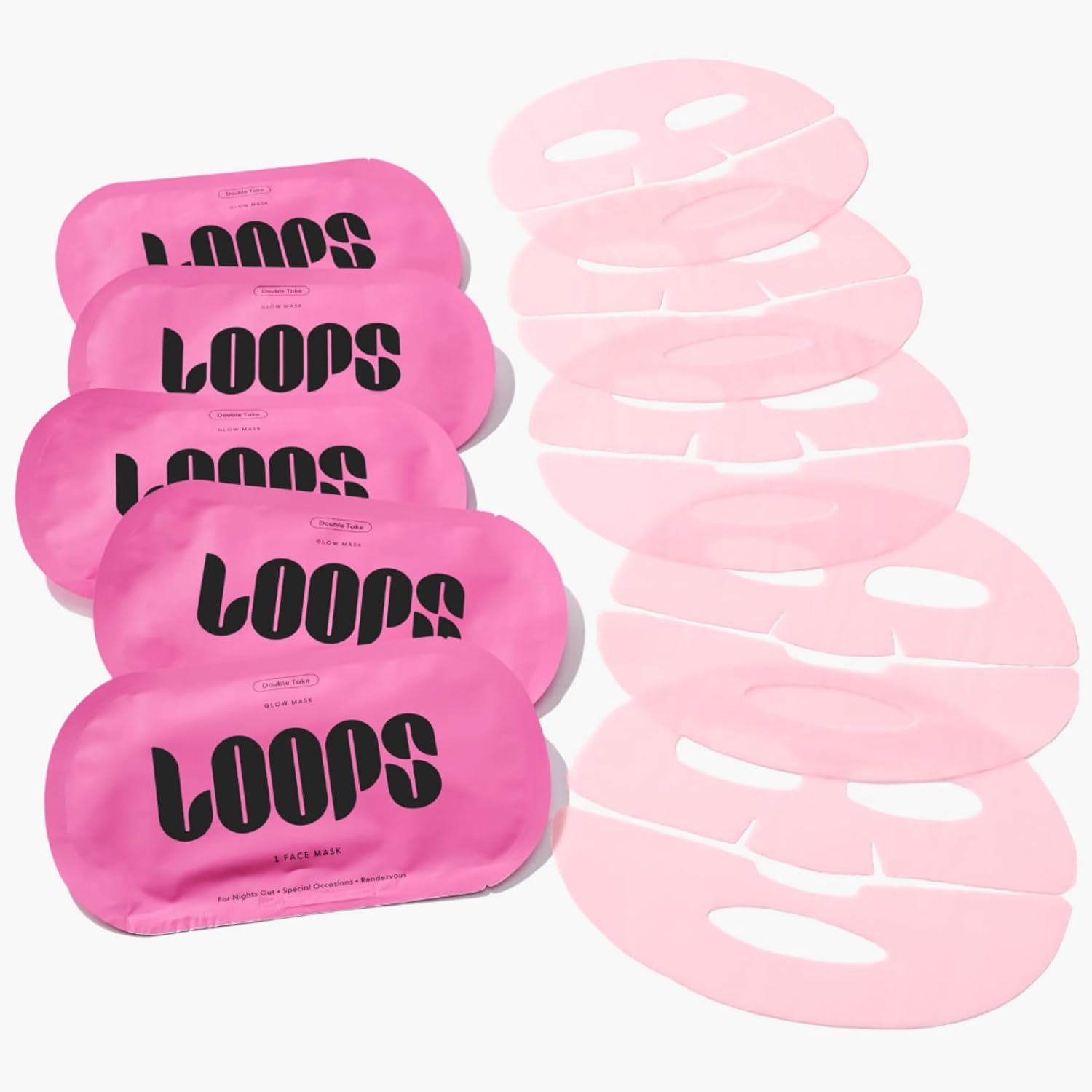 LOOPS DOUBLE TAKE - Glow Hydrogel Korean Face Mask - Calms & Soothes Skin’s Surface - Helps Refine Pores Glowing and Luminous - For All Skin Types - 5 pc