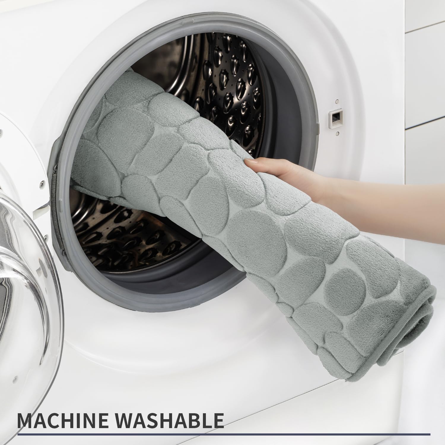 YIHOUSE Memory Foam Bath Mat Cobblestone Bathroom Rugs Super Water Absorbent Bath Mats for Bathroom Machine Washable Bath Rugs(20 x 24,Light Gray)
