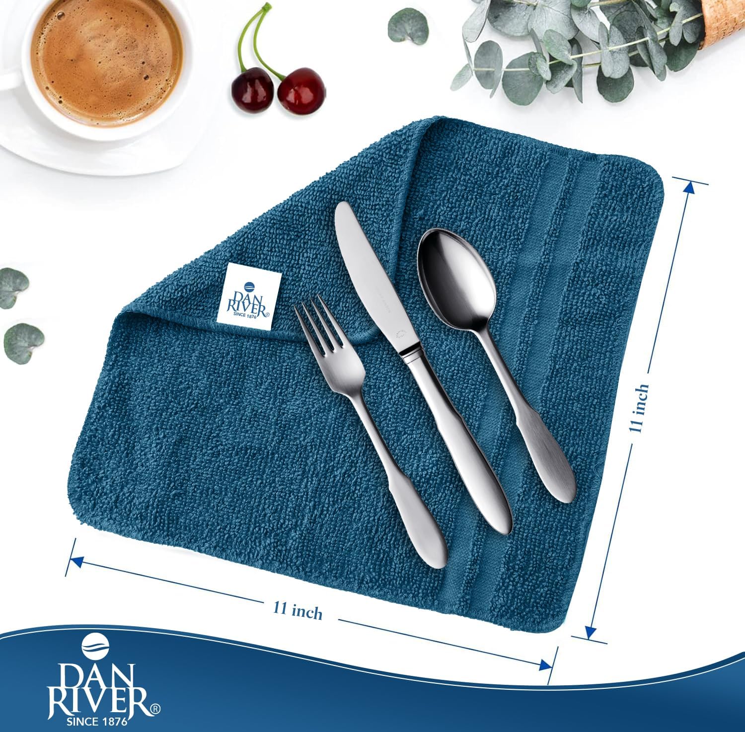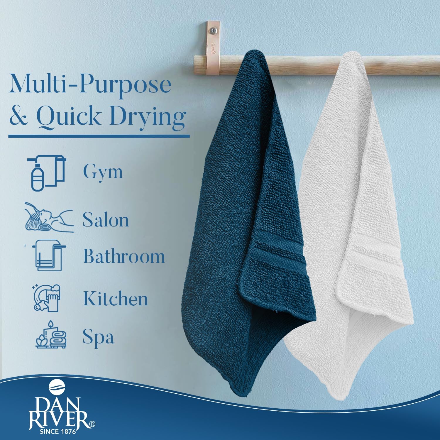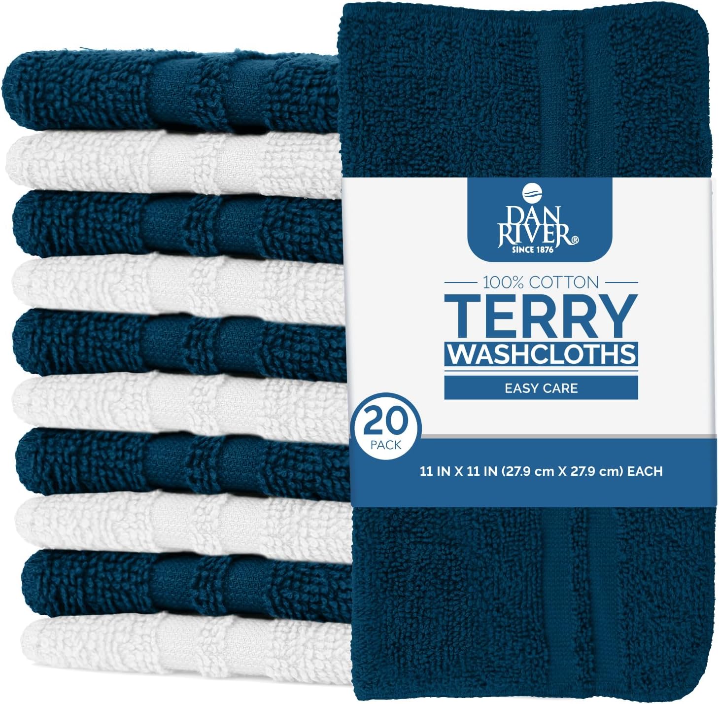 DAN RIVER 100% Cotton Washcloths 20 Pack Premium Quality Face and Body Cloth, Quick Dry Essential Towels for Bathroom, Hand, Kitchen & Cleaning, Baby Washcloths | 11X11 in | 400 GSM | Blue Opal+White