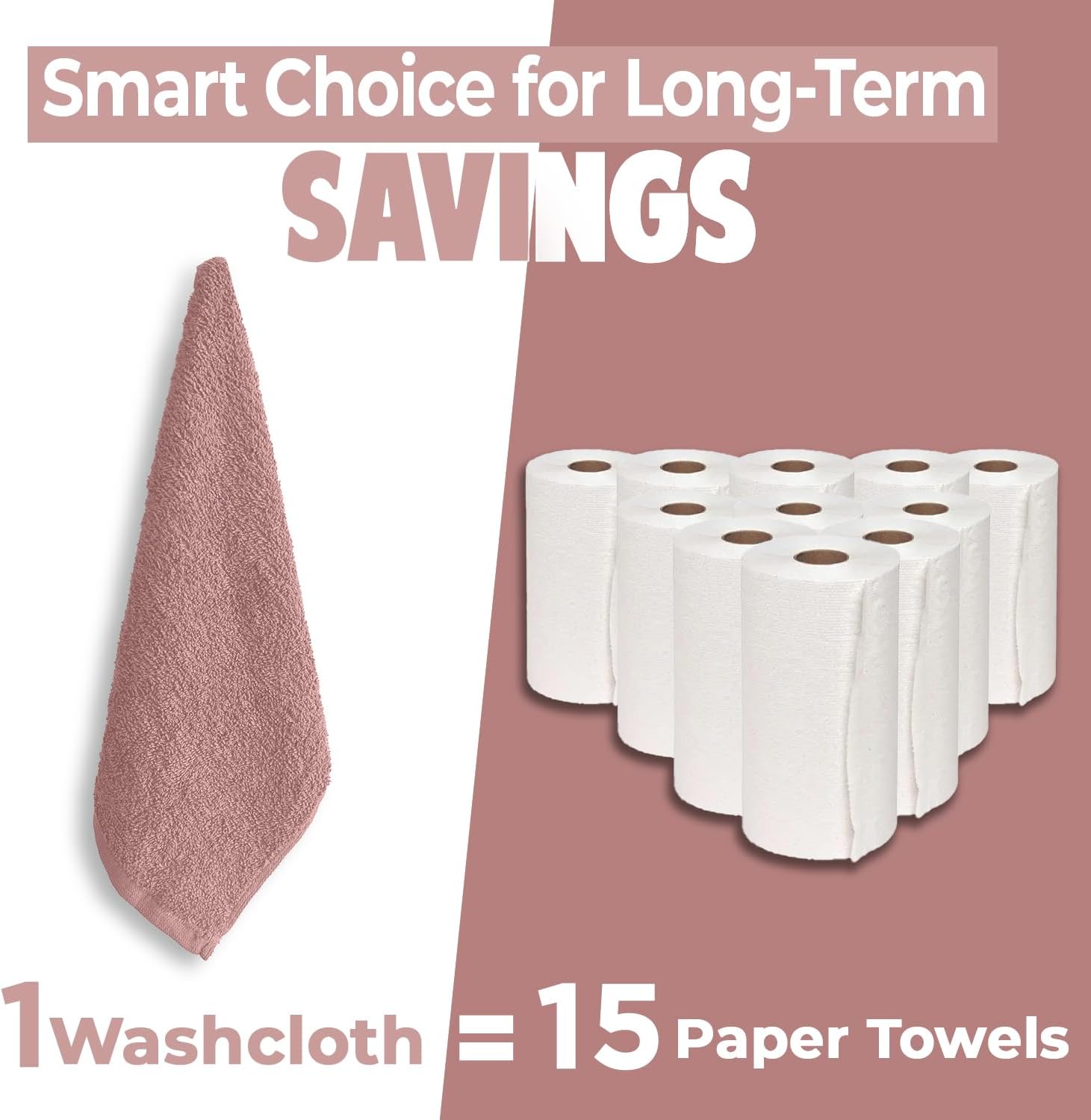 DAN RIVER 100% Cotton Wash Cloths 12 Pack [12x12] Soft & Absorbent wash Cloths for Bathroom, Gym, Hotels & Spa Perfect for Everyday Use Fingertip Towels, Dusty Pink